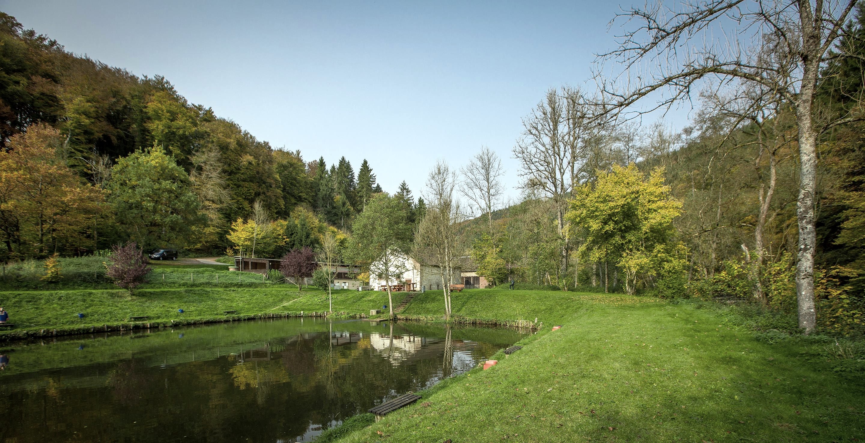 Vor Ort am Weiher in der Mühle.