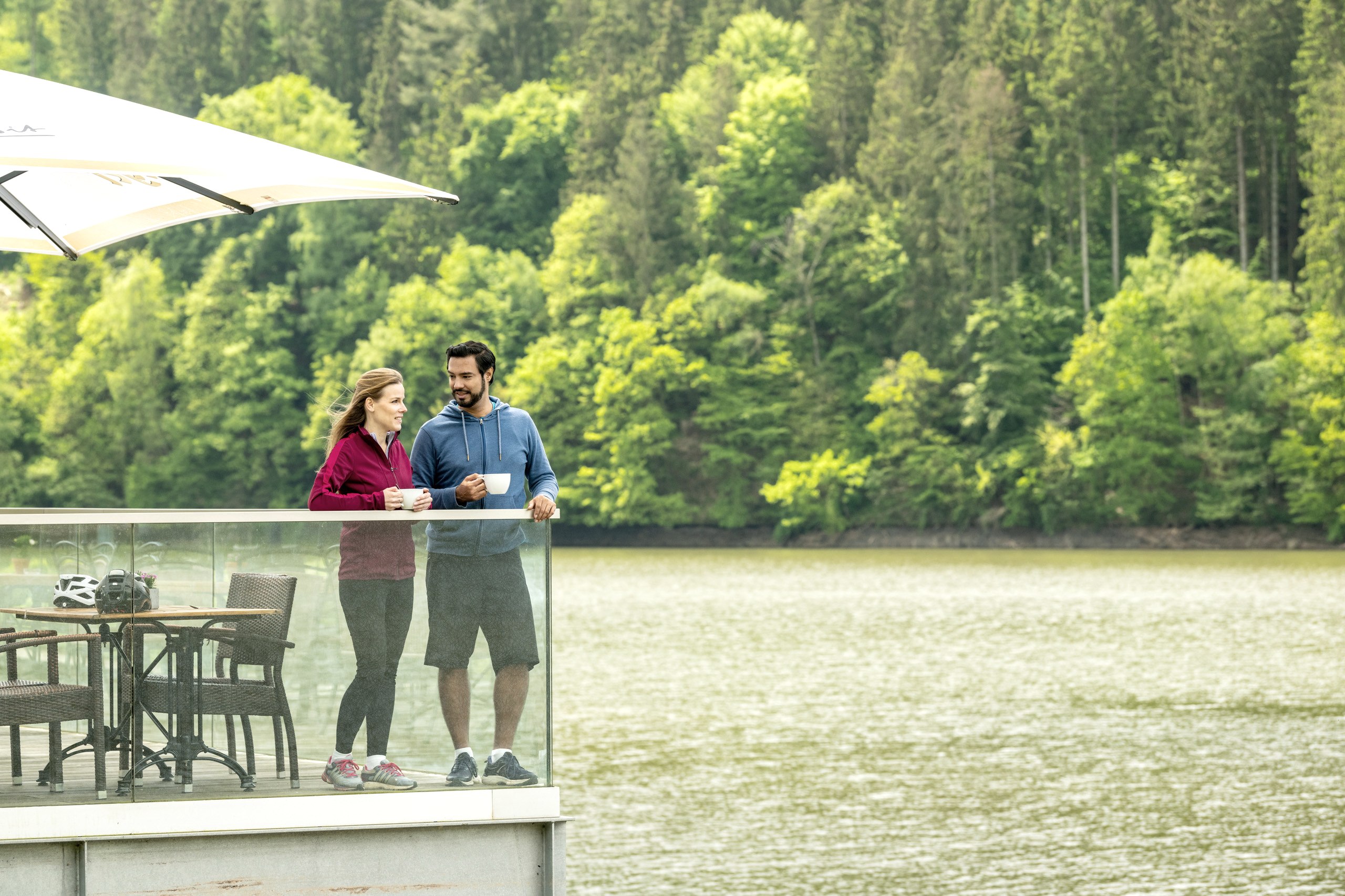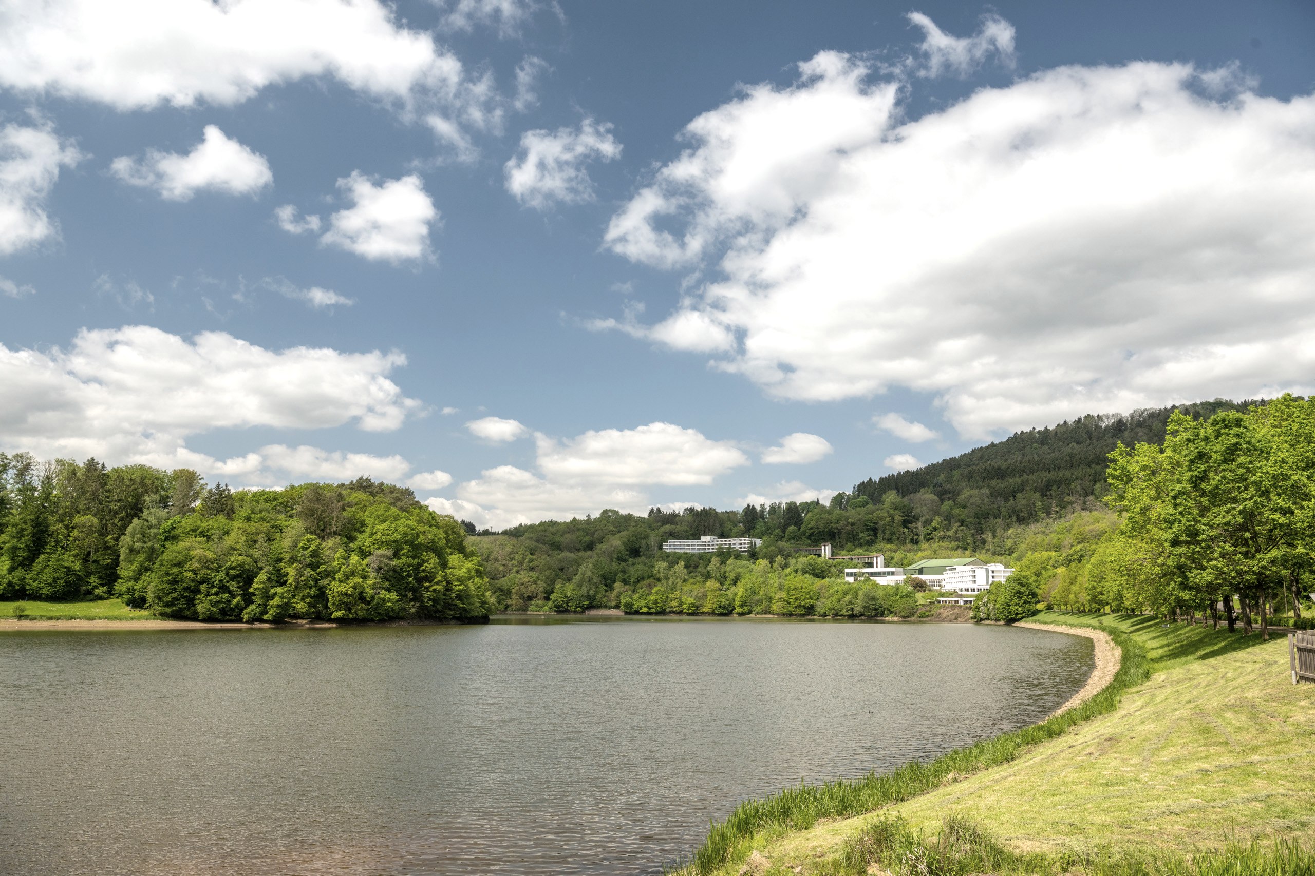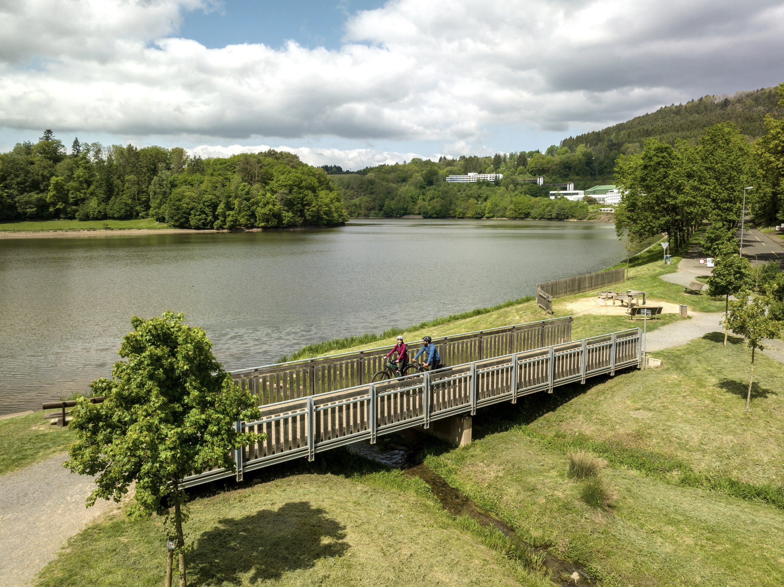 Der Stausee bei Biersdorf, gelegen im malerischen Tal der Prüm, ist das Herzstück des touristischen Angebots in der Südeifel. An der rund fünf Kilometer langen Seeuferpromenade können Besucher gemütliche Spaziergänge genießen. Eine Vielzahl von Gaststätten, Restaurants und Cafés liegt in unmittelbarer Nähe und lädt zum Verweilen ein.