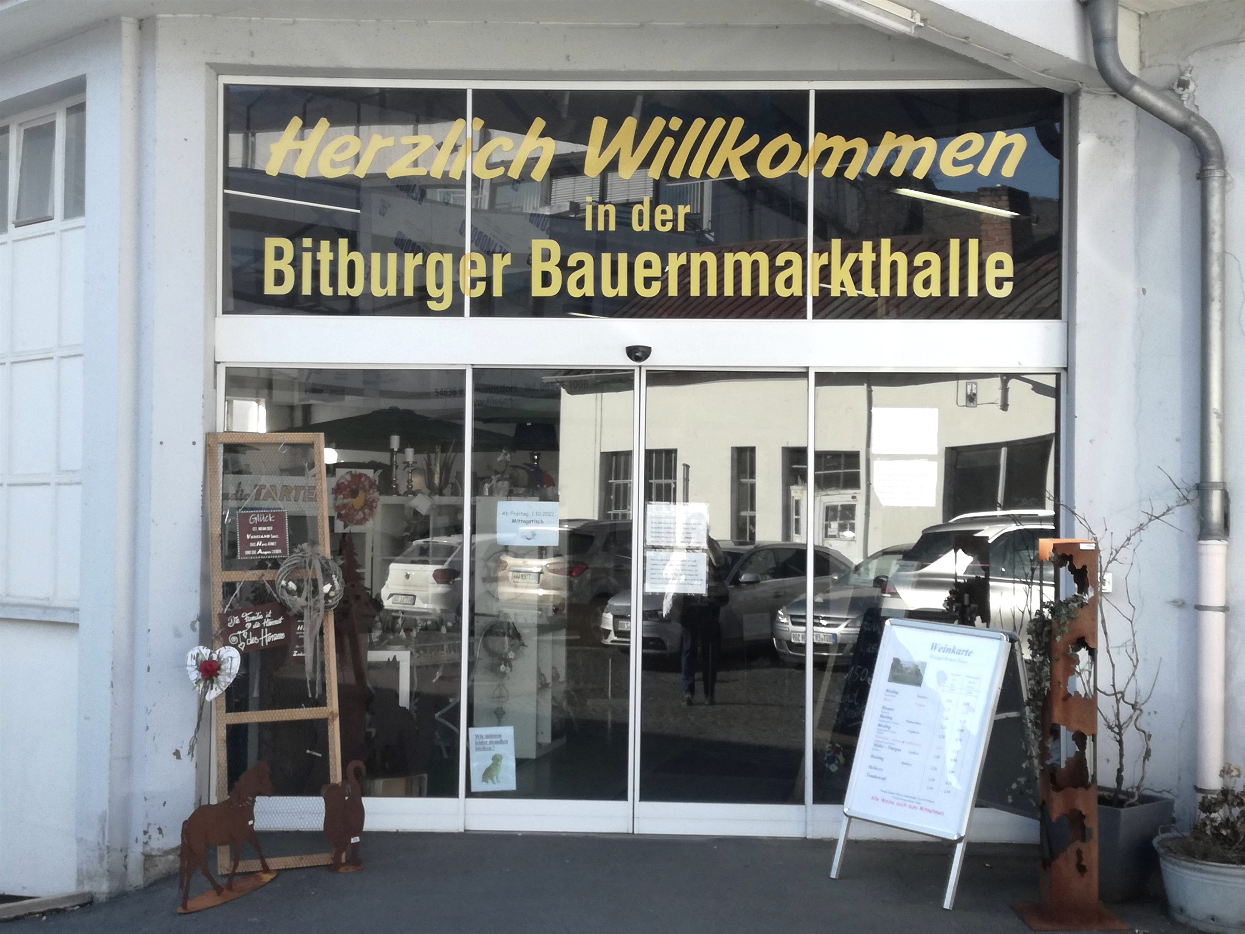 Das Interesse an frischen landwirtschaftlichen Produkten von Direktvermarktern wächst durch die immer wiederkehrenden Lebensmittelskandale (wie zum Beispiel „Gammelfleisch“) mehr und mehr. „Aus der Eifel – für die Eifel“ so lautet der Slogan der Bauernmarkthalle in Bitburg. Hier können die Einheimischen und Gäste seit 2006 landwirtschaftliche Produkte aller Art direkt beim Erzeuger kaufen. Die Halle befindet sich auf dem Gelände neben der Kreissparkasse zwischen Trierer Straße und Bedaplatz. Im Angebot sind Fleisch, Käse, Wild, Honig, Eier, Saft, Schnaps, Dinkel-Produkte und viele weitere hochqualitative Lebensmittel aus der Region Eifel. Mit im Angebot sind auch Waren der „Marke Eifel“.