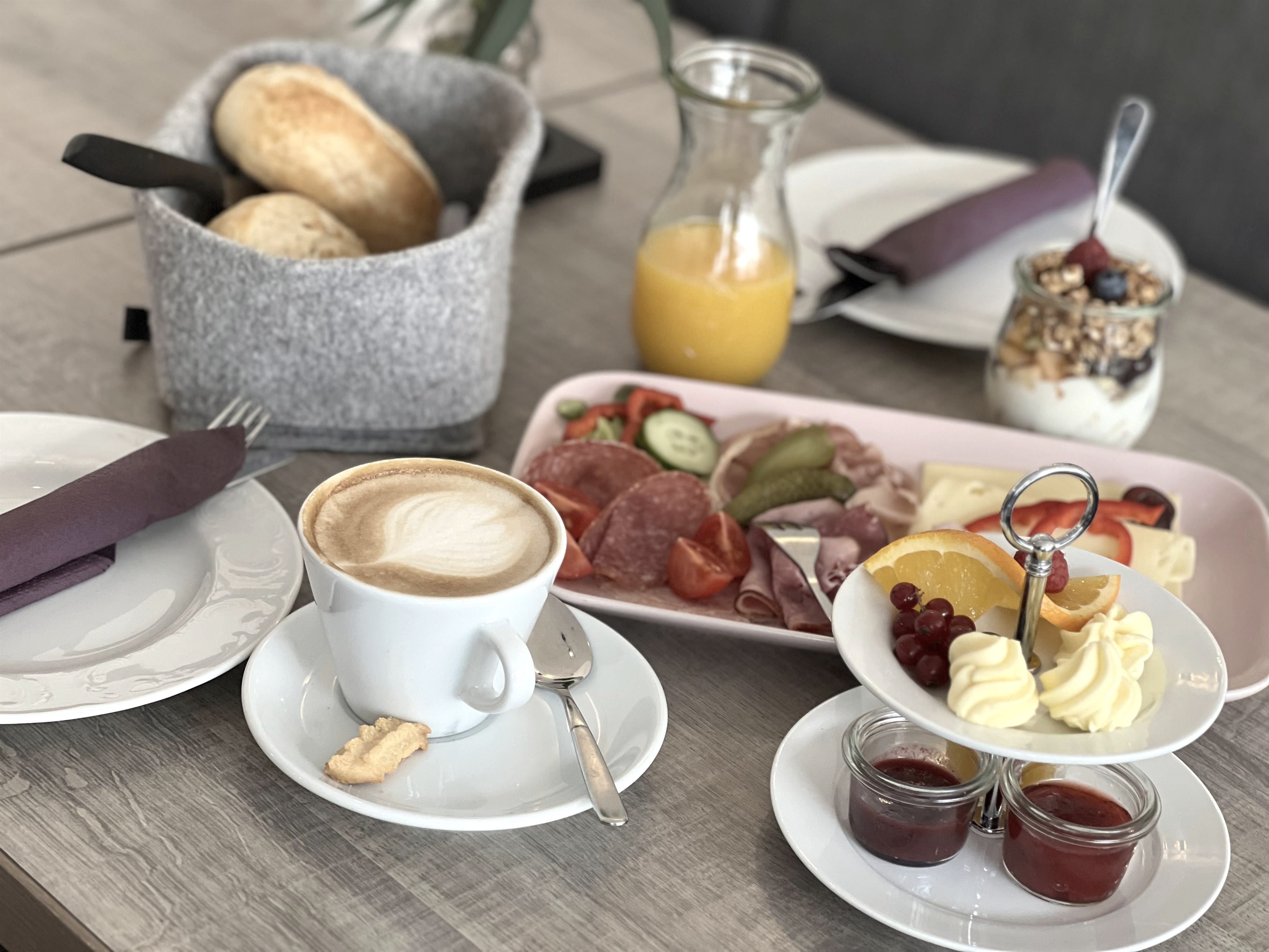 Genießen Sie in familiärer Atmosphäre selbstgemachte Törtchen, belegte Brötchen, oder ein mit Liebe zubereitetes Frühstück mit selbstgemachten Marmeladen. Dazu eine Kaffee- oder Teespezialität. Auf Bestellung auch vegan/glutenarm. Große Kuchen/Torten sind auf Anfrage möglich. Wir legen Wert auf Produkte voin unseren regionalen Partnern.
