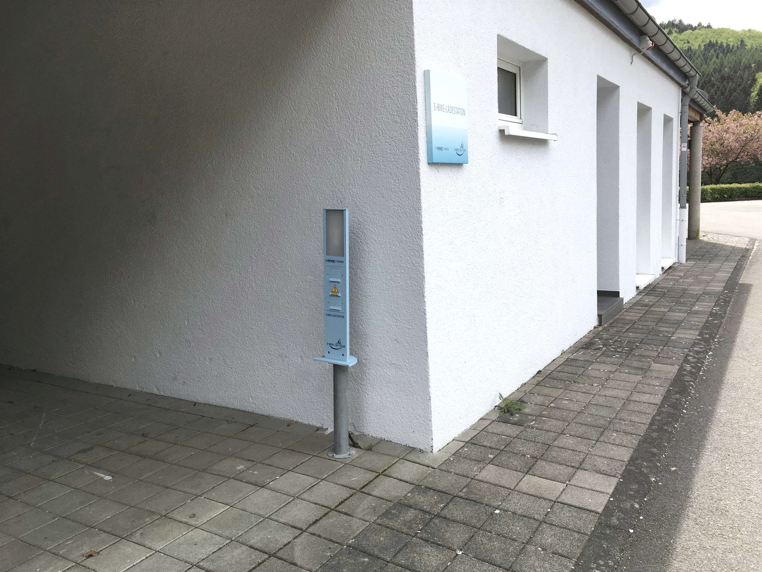 Am Stausee Bitburg in der Gemeinde Biersdorf am See befindet sich eine E-Bike Ladesäule am Wanderparkplätz "Zur Rotlay", direkt am Stausee. Die Ladestation ist beim Bootshaus von Afunti.