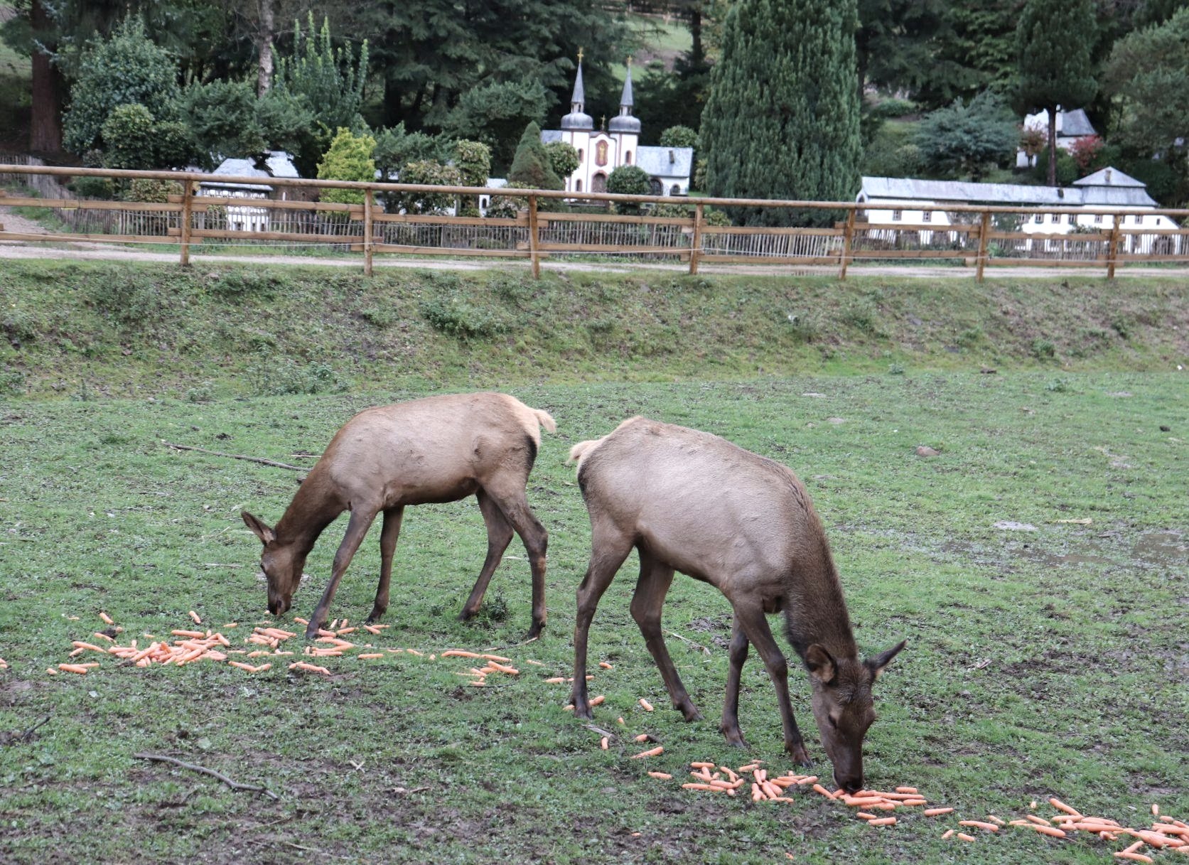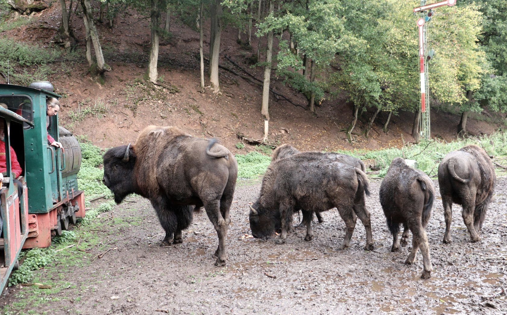 Erleben Sie die Fahrt mit der EIFEL - ZOO - Bahn (1,2 km mit Bahnhof), wobei die Fütterung der Hirsche und Bisons, die aus der Hand fressen, der Höhepunkt ist.