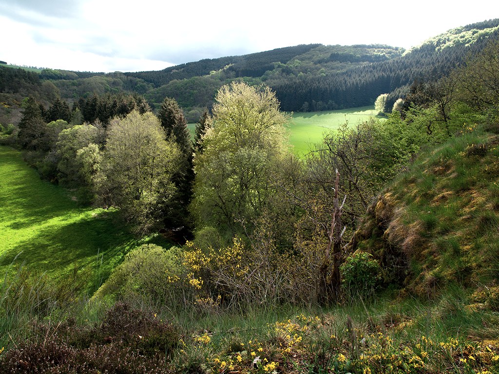 Ihr bleibt also zunächst auf der linken Bachseite und folgt dem gewundenen Lauf der Irsen, eurem munter plätschernden Begleiter bis zum kleinen Ort Falkenauel. An der Karlshausener Mühle überquert ihr die Irsen, gewinnt über einen gewundenen Waldweg stetig an Höhe und genießt auf dem Hüberg einen herrlichen Weitblick bis in die Ardennen. Nach einer Rast geht es auf verschlungenen Wegen in Richtung Daleiden. Nach Passieren eines großen Ehrenfriedhofs wendet sich die Route talwärts, um das Erholungsgebiet Irsental wieder zu erreichen und den Rundweg zu beschließen.