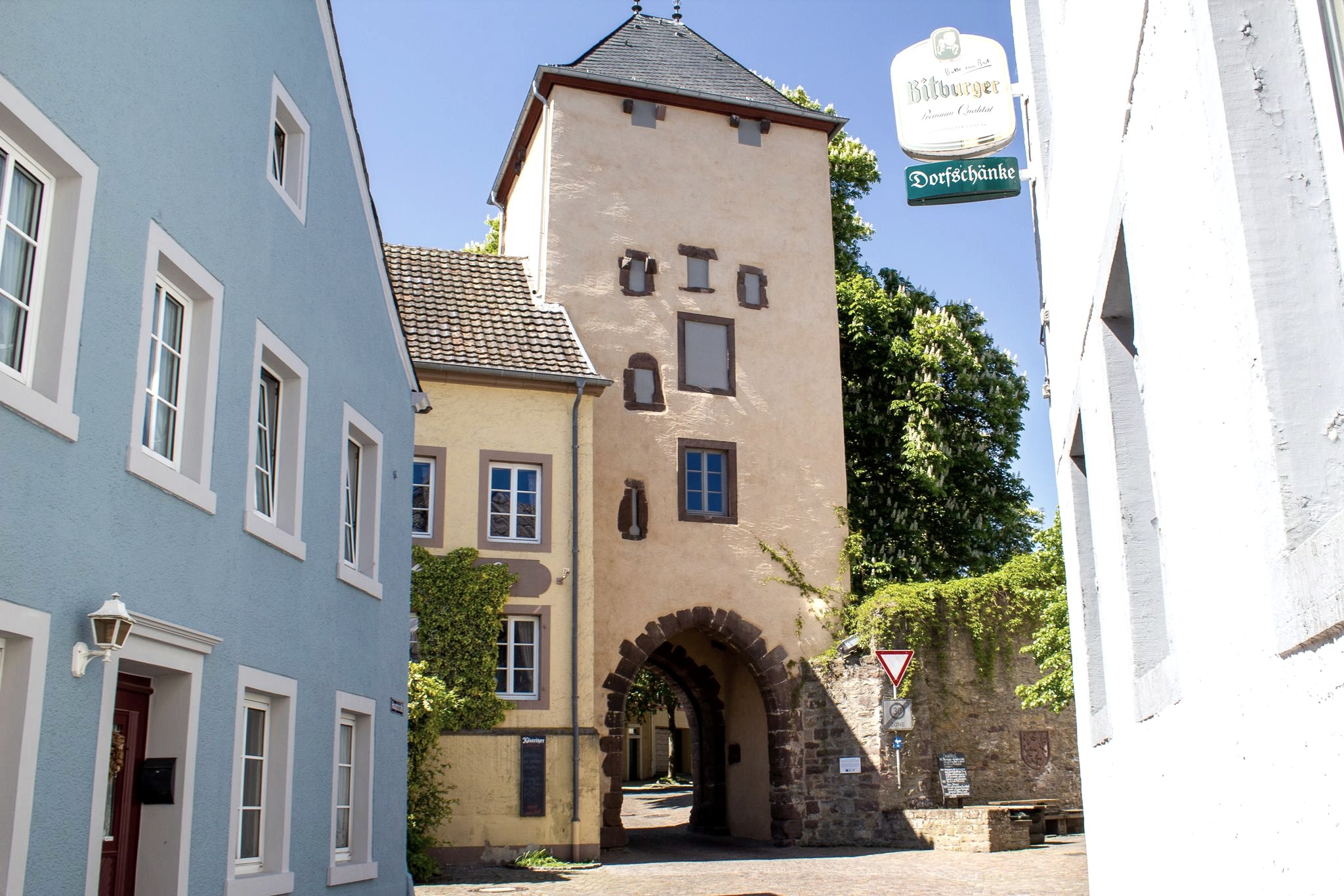 Das ehemalige Ackerbürgerstädtchen mit teilweise erhaltener Stadtbefestigung von 1345 bzw. 1750 hat sich seinen mittelalterlichen Charme bis heute erhalten. Der Ort war bis zur französischen Revolution Grenzort des Herzogtums Luxemburg gegen Kurtrier und erhielt 1345 von König Johann von Böhmen das Recht auf den Bau einer Mauer. Zwei Stadttore, das Obertor von 1453 sowie das etwa gleichzeitig erbaute Untertor, eine zum Schloss umgebaute Burg aus dem 18. Jahrhundert sowie alte Straßenzüge zeugen von der vergangenen strategischen Bedeutung als Festungsstädtchen. Weitere historische Sehenswürdigkeiten in Dudeldorf sind u.a. das ehemalige Pfarrhaus aus dem Jahr 1759, das ehemalige Spritzenhaus aus dem Jahr 1900 an der Auffahrt zur Burg, das Alte Brauhaus - heute ein Gasthaus - mit ehemaligem Pfarrgarten, der Marktbrunnen aus dem Jahr 1859 sowie der Johannesbrunnen mit der Figur des heiligen Nepomuk aus dem 18. Jahrhundert.
