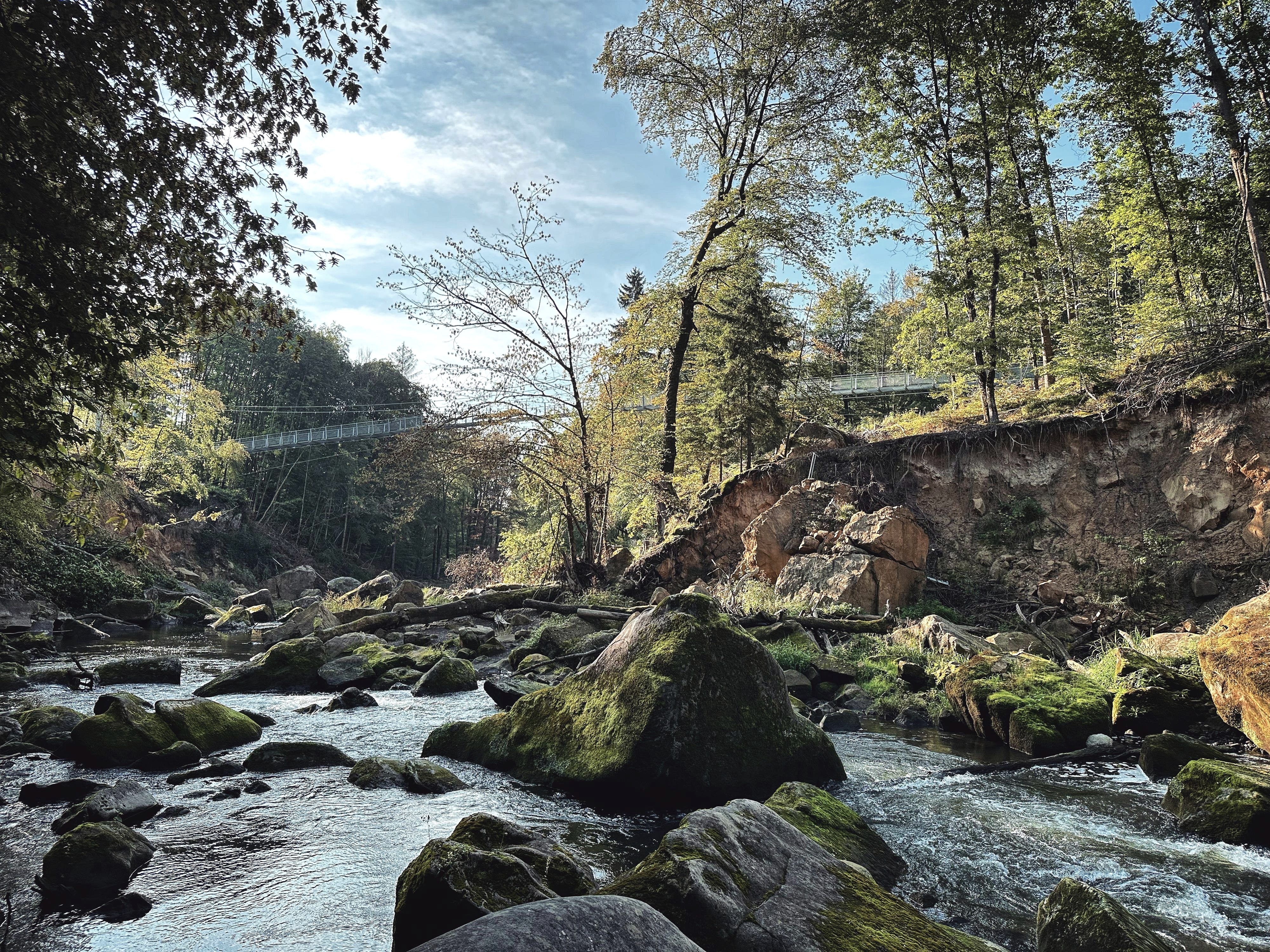 Seit dem Herbst 2023 kann man die Prüm wieder über eine neue, teilweise barrierefreie Hängebrücke überqueren. Weitere Informationen zur Brücke finden Sie in den beigefügten Dokumenten zum Download.