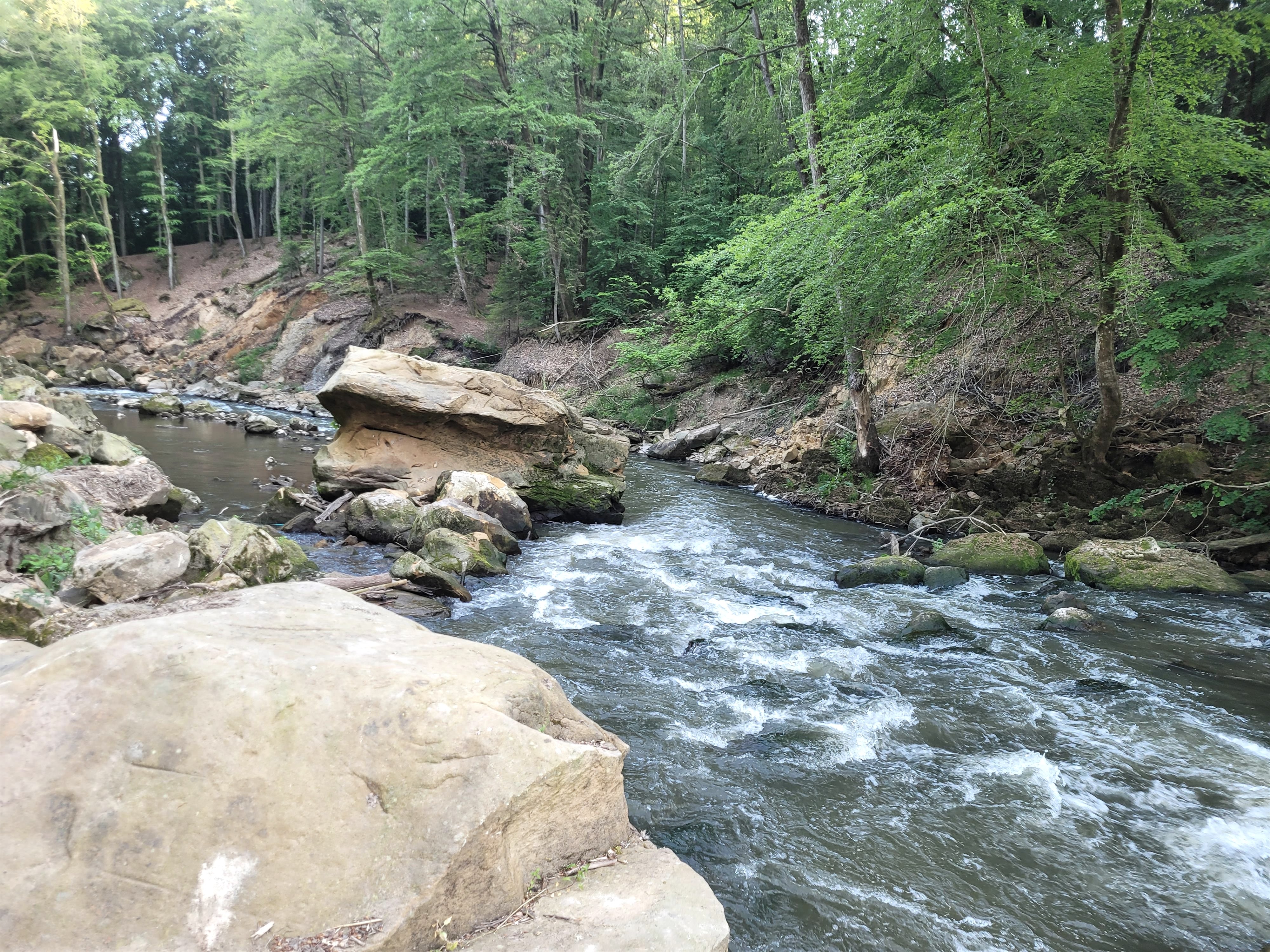 Häufig liest und hört man, die "Irreler Wasserfälle", die imposanten Stromschnellen der Prüm, gäbe es seit der Flutkatastrophe 2021 nicht mehr. Tatsächlich hat das Hochwasser in der Talenge, die der Fluss zwischen Irrel und Prümzurlay durchfließt, mehr als deutliche Spuren hinterlassen: Die Wassermassen haben nicht nur die überdachte Wanderbrücke zerstört, sondern auch ganze Felsblöcke verschoben, enorme Hangrutschungen verursacht, das Flussbett stark verändert und ein Meer von Steinen und Sand, entwurzelten Bäumen und Treibgut hinterlassen. Doch hat der Ort nichts von seiner Faszination verloren.