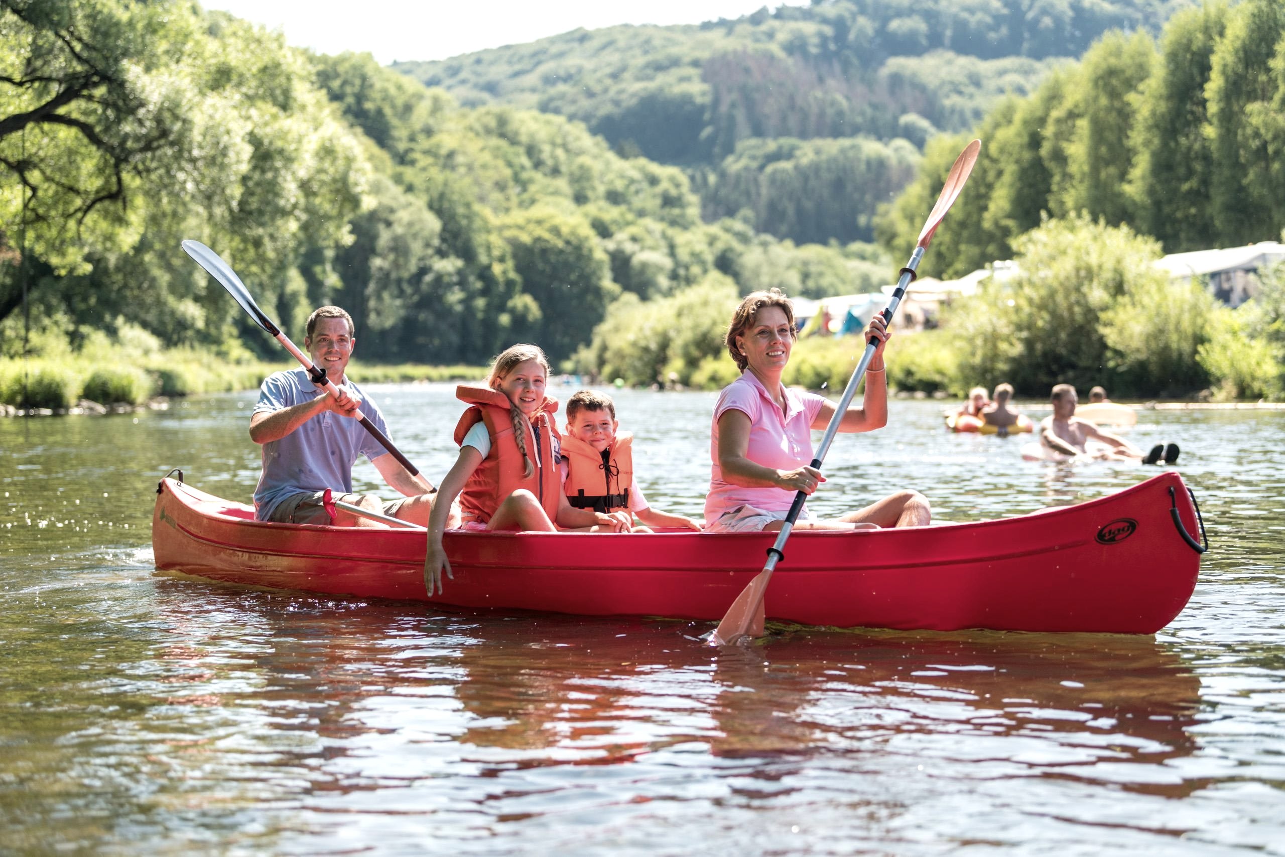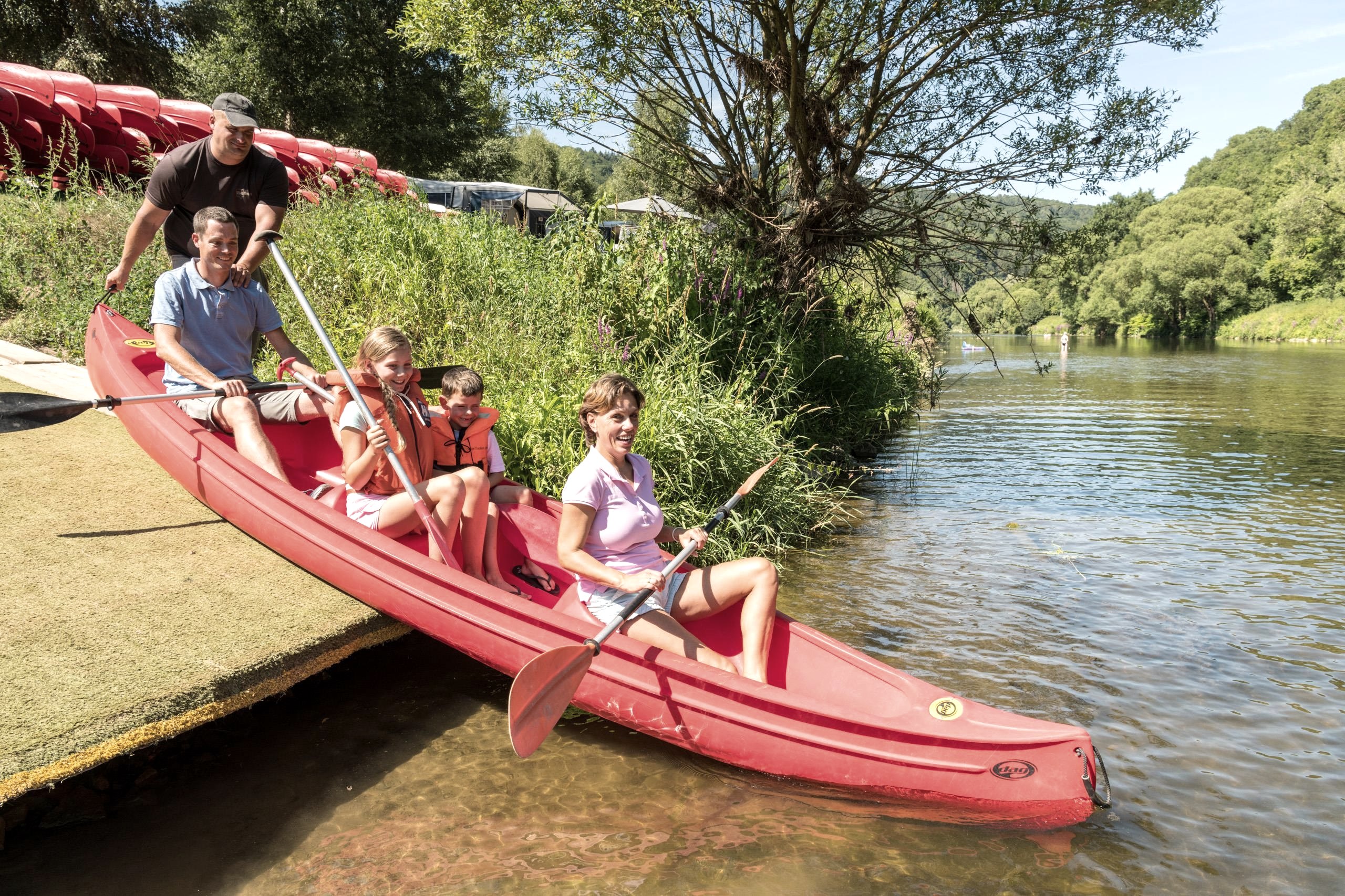 Eine Fahrt mit dem Kanu auf der Sauer bietet eine gute Möglichkeit, dem Alltagsstress zu entfliehen. Der Campingplatz Altschmiede verleiht Dreier-Kanadier sowie Ein- und Zwei-Personen-Kajaks für drei- bis vierstündige Touren.