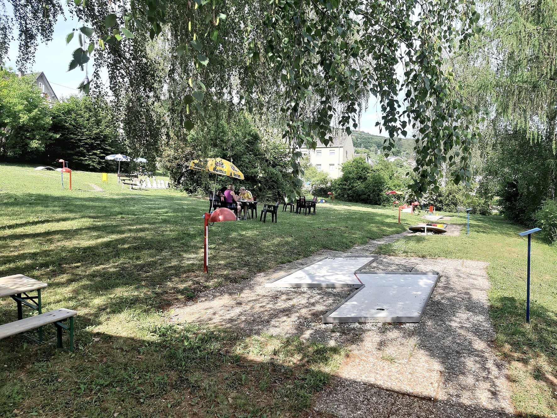 Auf der Minigolfanlage Bollendorf kann man nicht nur Minigolf spielen, sondern auch Boule und Freiluft-Schach. Dazu gibt es einen gemütlichen Biergarten, wo man bei einem Regenschauer auch unter Dach sitzen kann. Hier gibt es außerdem Getränke, Eis und Knabbereien.
