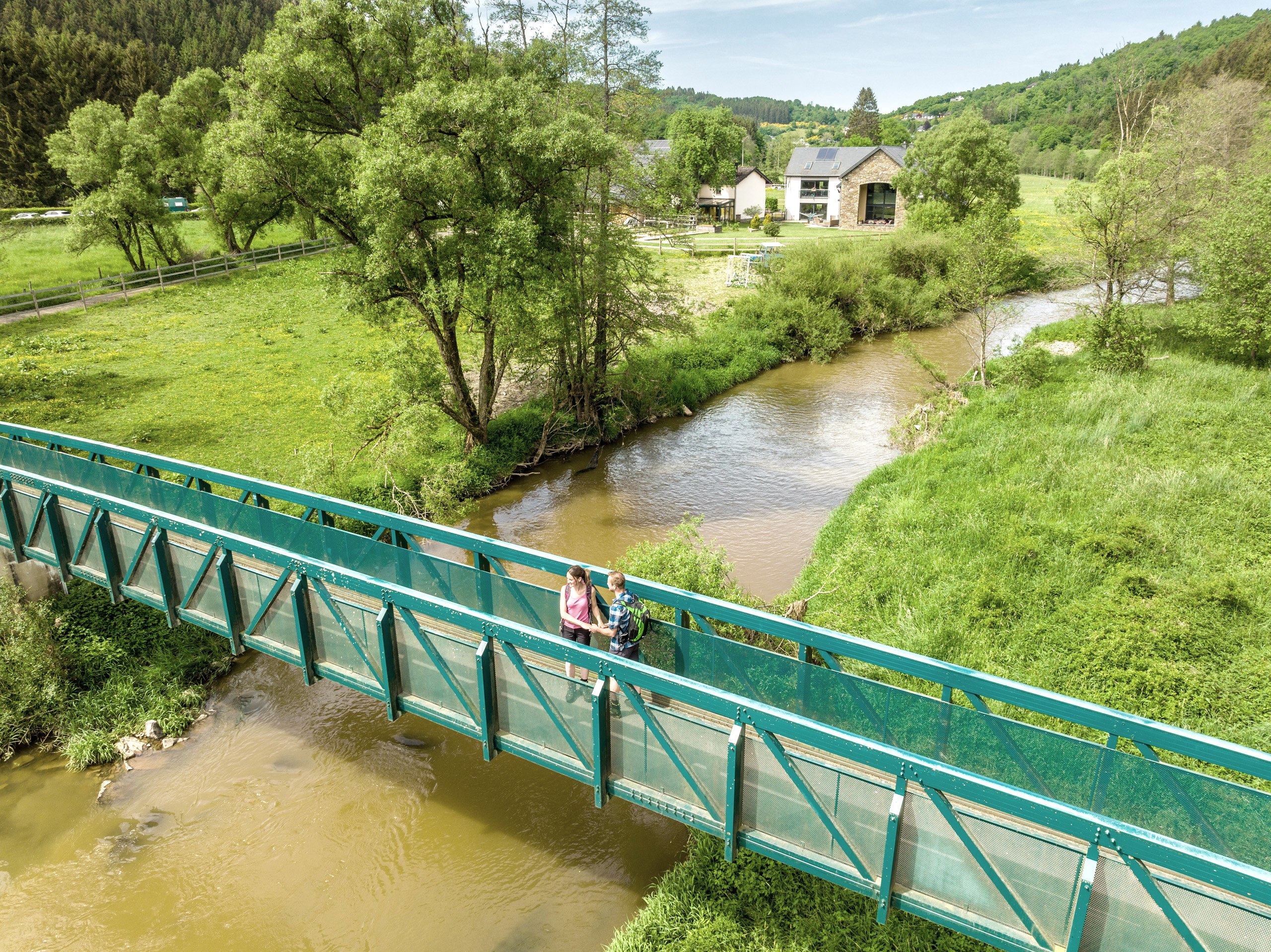 Glitzernd funkelt das Wasser. In zig kleinen Kaskaden springt es plätschernd über die blankpolierten Kiesel. Es ist ein schönes Bett, das sich die Our gemacht hat. Hundertausende von Jahren hat sie sich ihr gewundenes Tal in die Schiefer und Grauwackendecken des Islek gegraben – zuweilen eng und steil, zuweilen etwas weiter mit Auengehölz und saftigen Wiesen. Dann lugt die Sonne bis in den Talgrund, zerrt an den Tautropfen und bringt wohlige Wärme. Ihre Strahlen durchdringen den klaren Bach und ihr könnt Forellen ausmachen, wie sie flink stromaufwärts huschen.