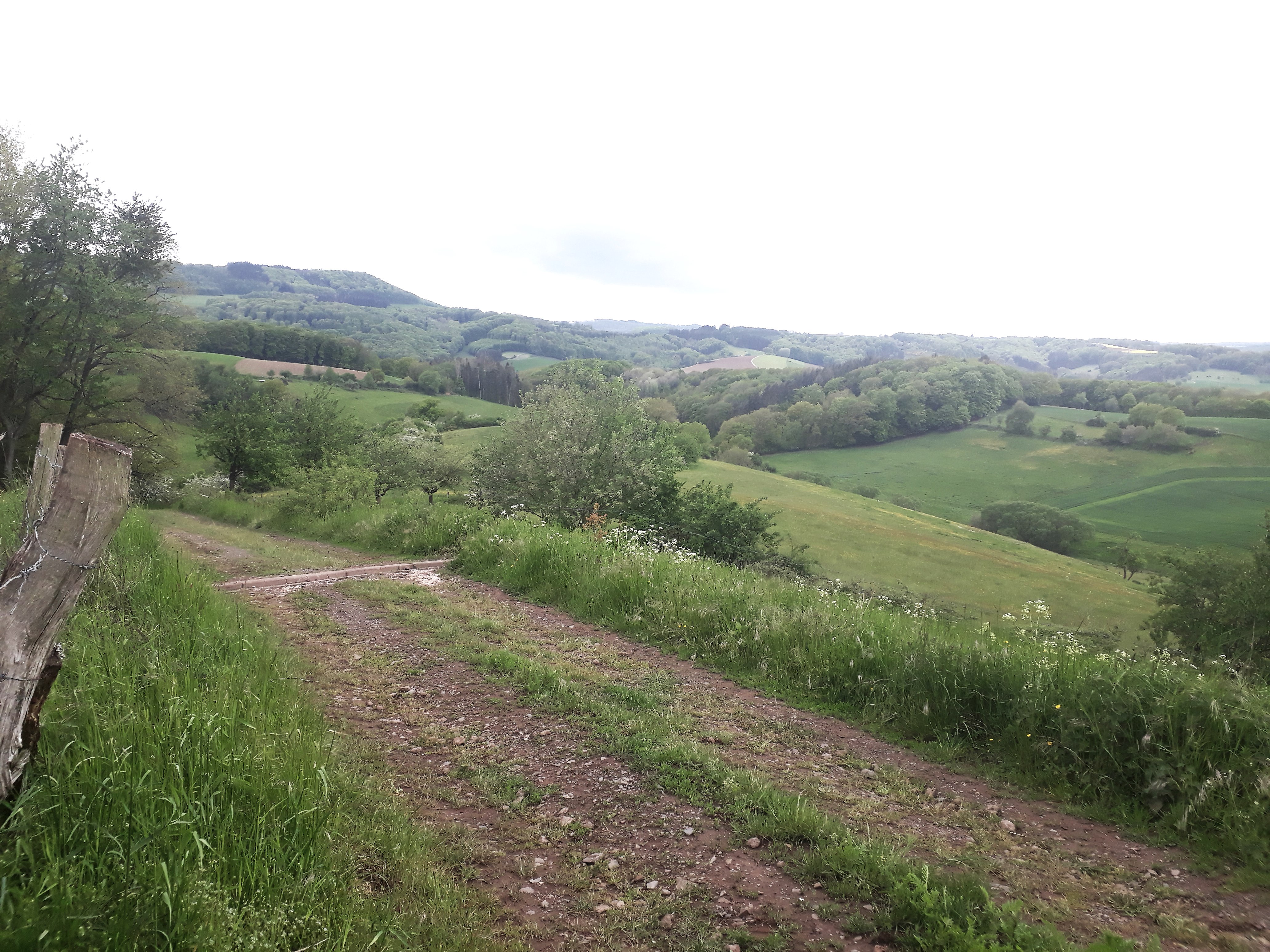 Unterwegs hat man tolle Ausblicke auf Streuobstwiesen und Ginsterheiden rund um den Äpfelberg. Ganz in der Ferne kann im Wald man sogar das Schloss Vianden in Luxemburg erkennen.