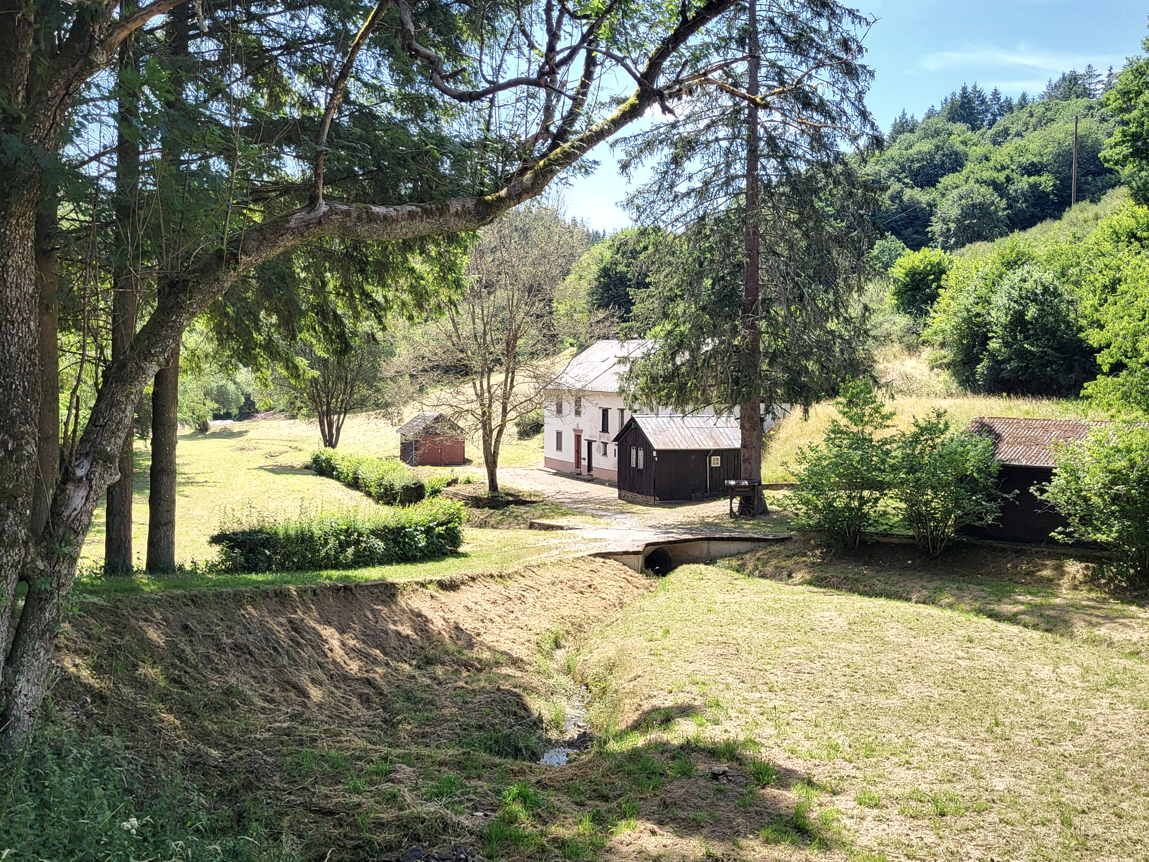 Schöner Rundweg über die Höhen um Dahnen und durchs Mühlbachtal, vorbei an einigen Fischteichen und der Steinkaulsmühle.