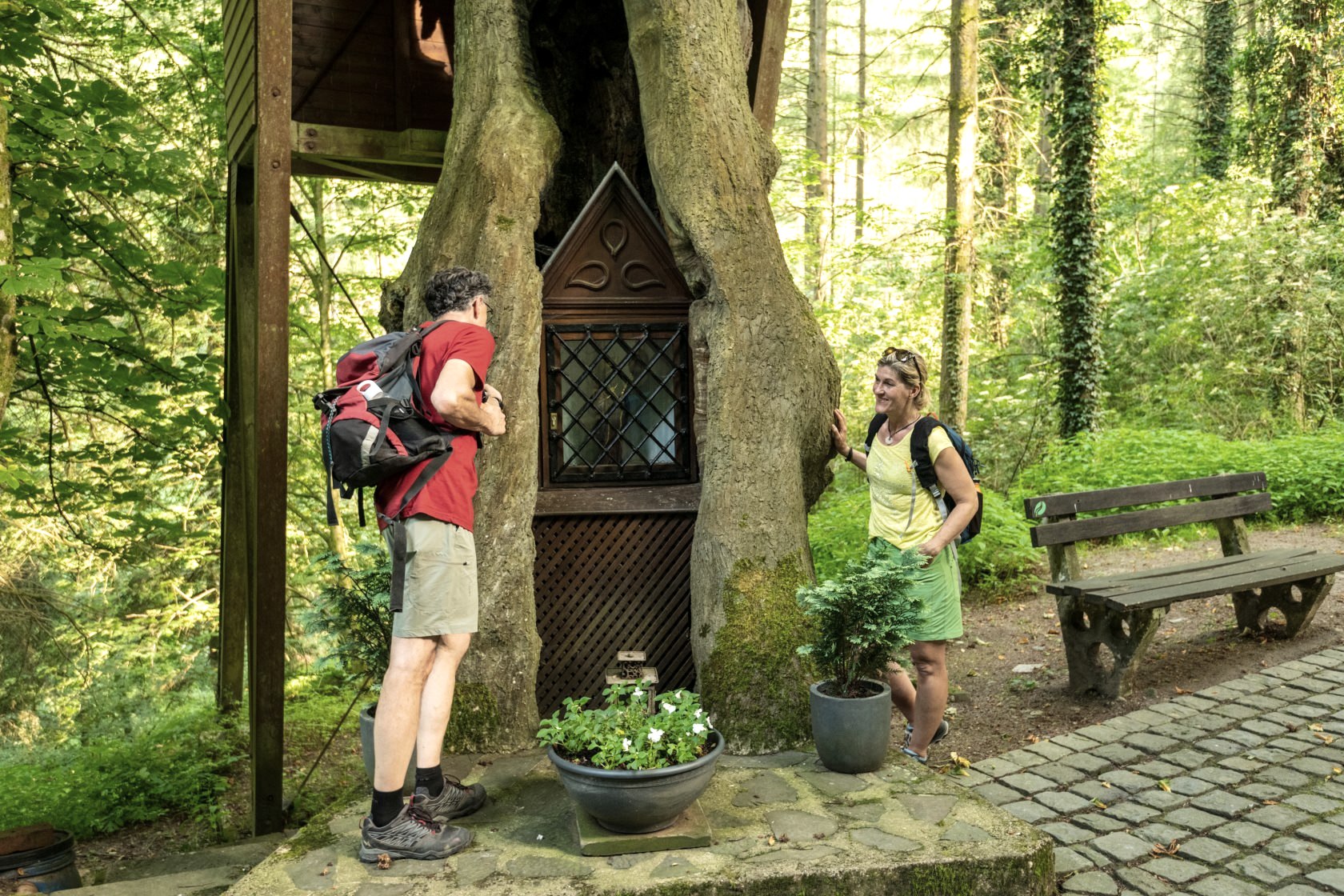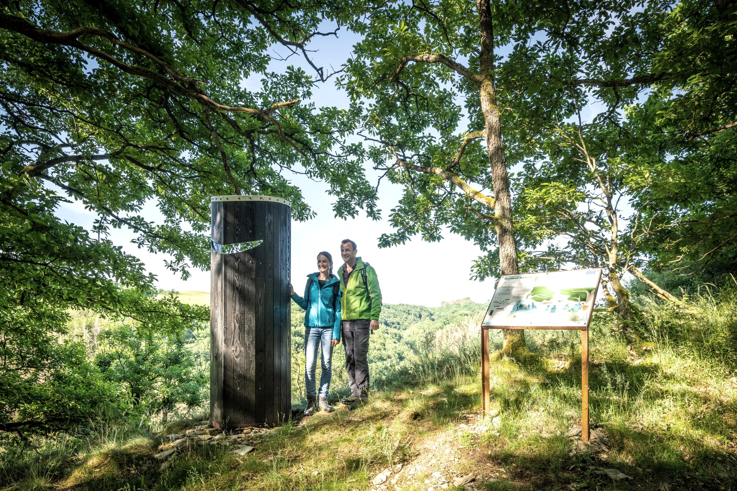 Auf dem Neuer-Burg-Weg erlebt ihr den „Urstoff“ einer Erzählung aus dem Mittelalter. In vier Akten durchlebt ihr an den Muße-Plätzen auf eurem Weg eine dramatische Liebesgeschichte. In mittelalterlich anmutenden Versen berichtet Ritter Kuno von Falkenstein höchstselbst von seinem Werben, dem Hinterhalt des Grafen von Vianden, seiner wundersamen Rettung durch eine hohle Eiche und seiner Vermählung mit dem Edelfräulein Ida in der Burgkapelle. Rastet im hohlen Baum, fröstelt ob der Rachsucht des mächtigen Grafen, kuschelt euch aneinander und genießt die Logenplätze.