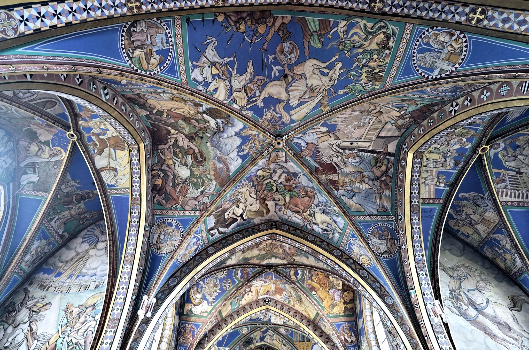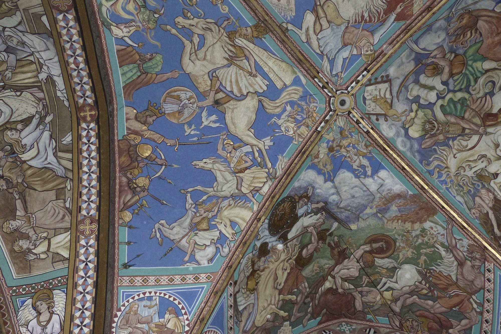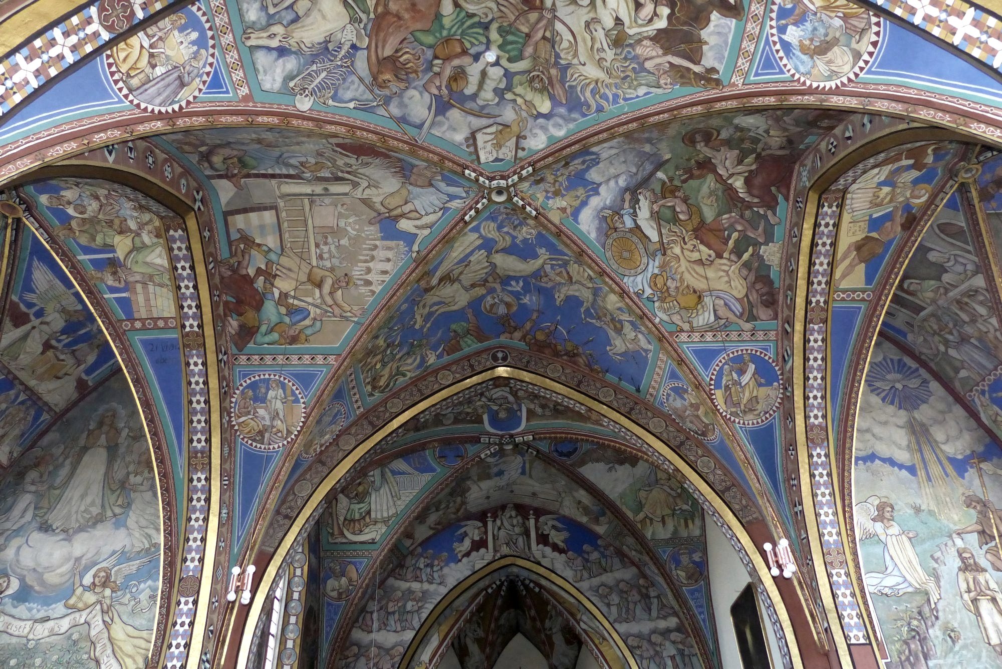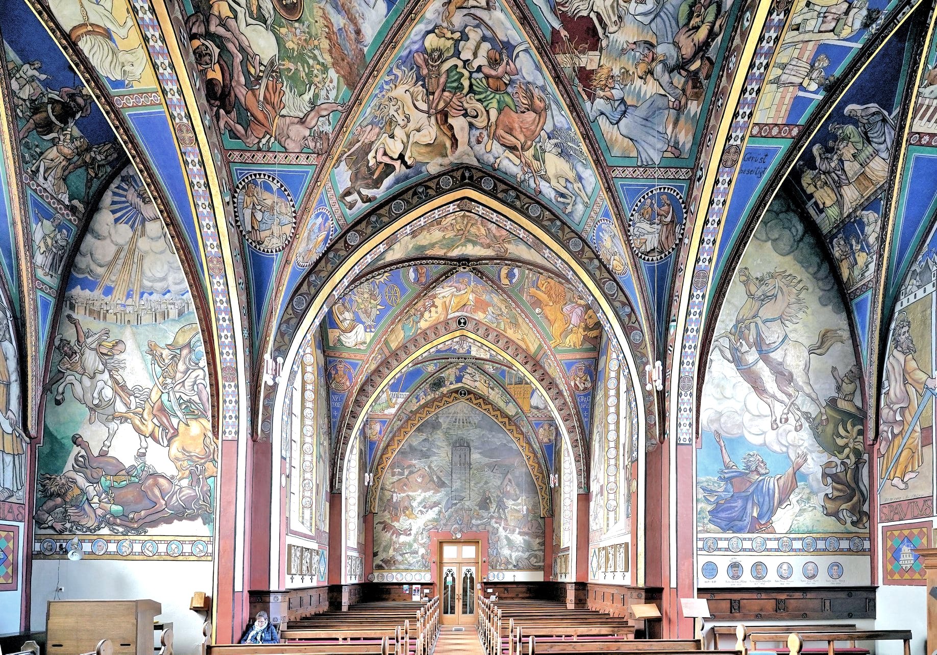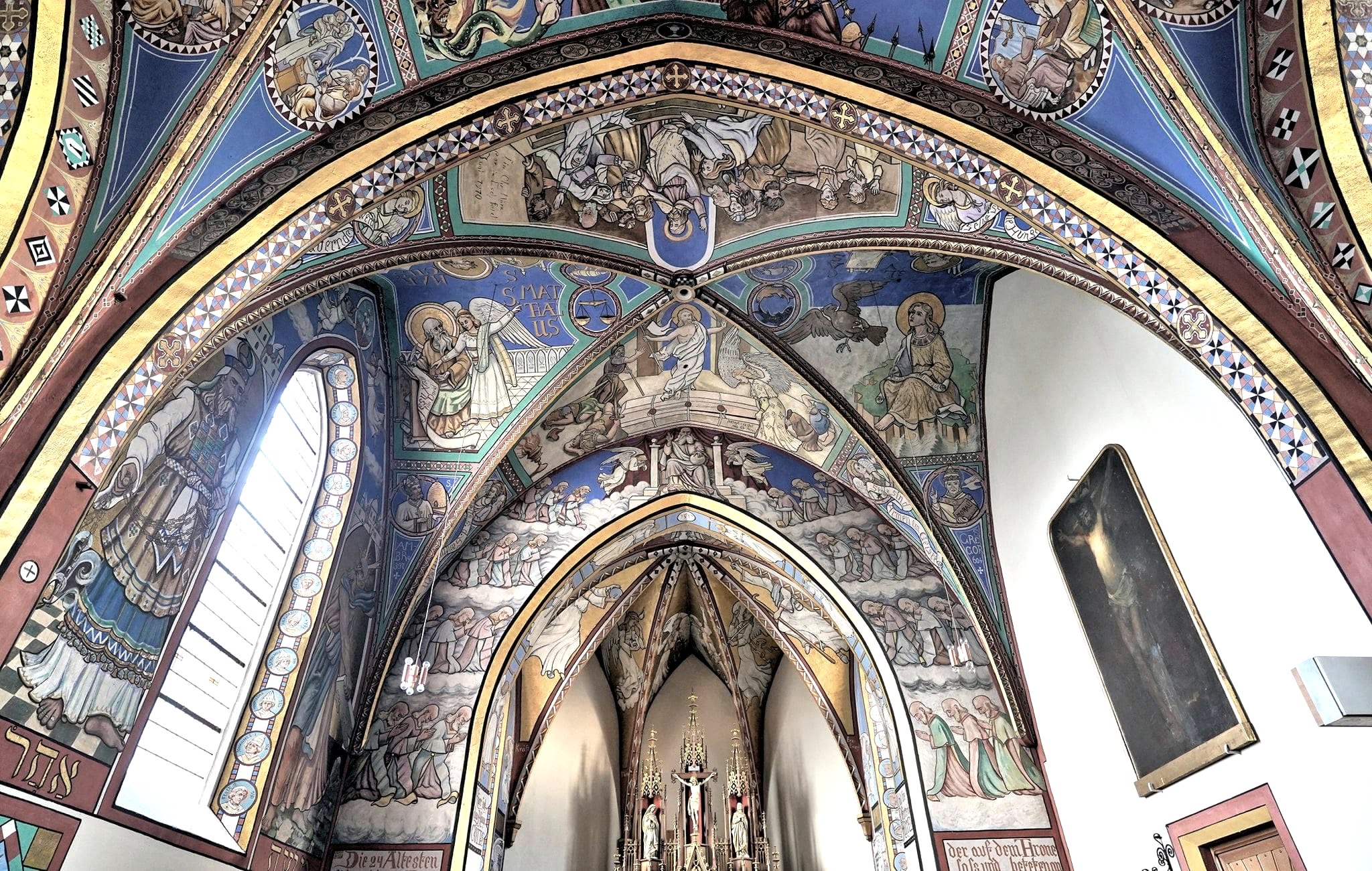 In der kleinen Gemeinde Eschfeld im Dreiländereck Deutschland-Belgien-Luxenburg befindet sich eine der interessantesten Kirchen der Region. Die Pfarrkirche aus dem Jahr 1869 ist ein neugotischer Saalbau mit kurzen Querarmen. In den Jahren 1906 - 1921 hat Pastor Christoph März an Wänden und Gewölbe eine aufgeschlagene Bibel gemalt. Über 1.000 Figuren und 150 Tiere hat er in seiner Pfarrkirche in Szene gesetzt.