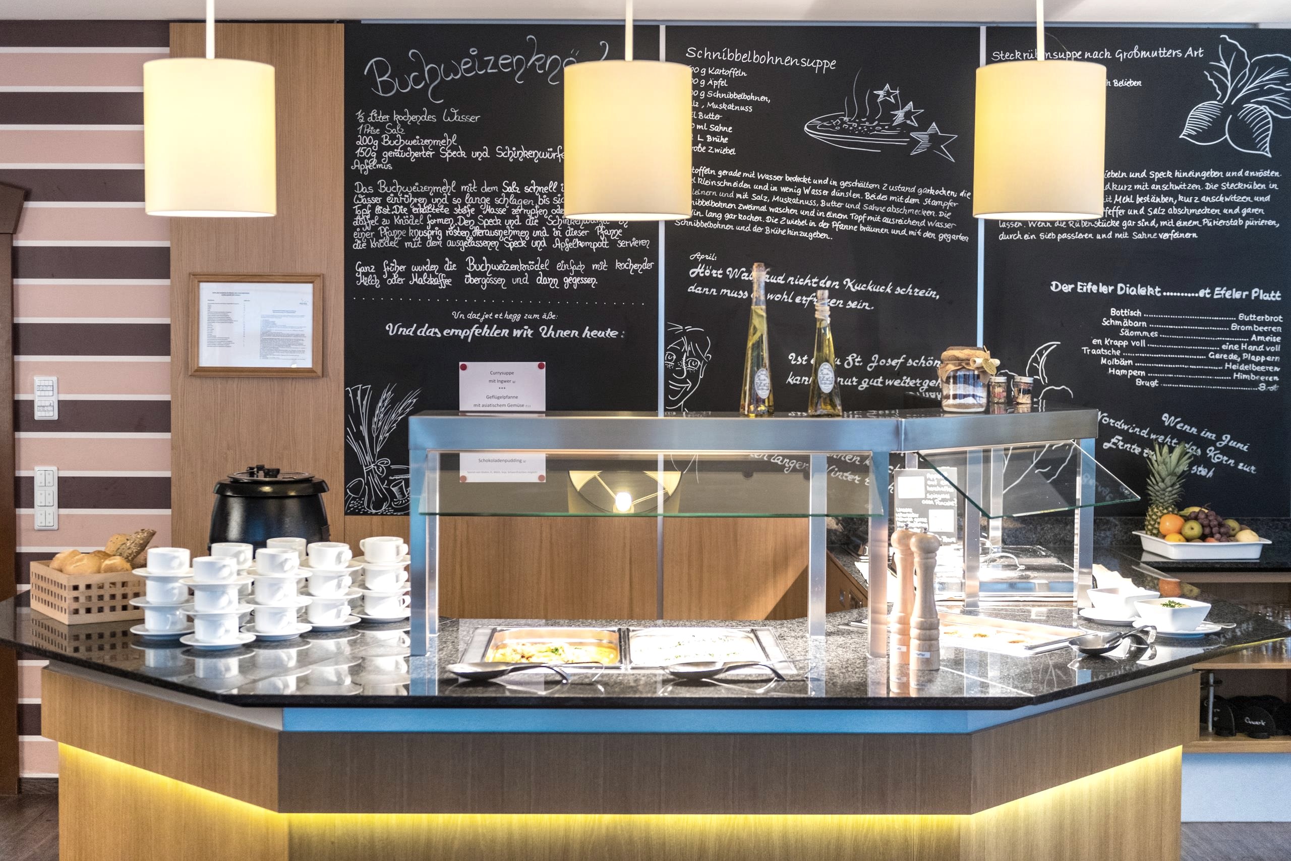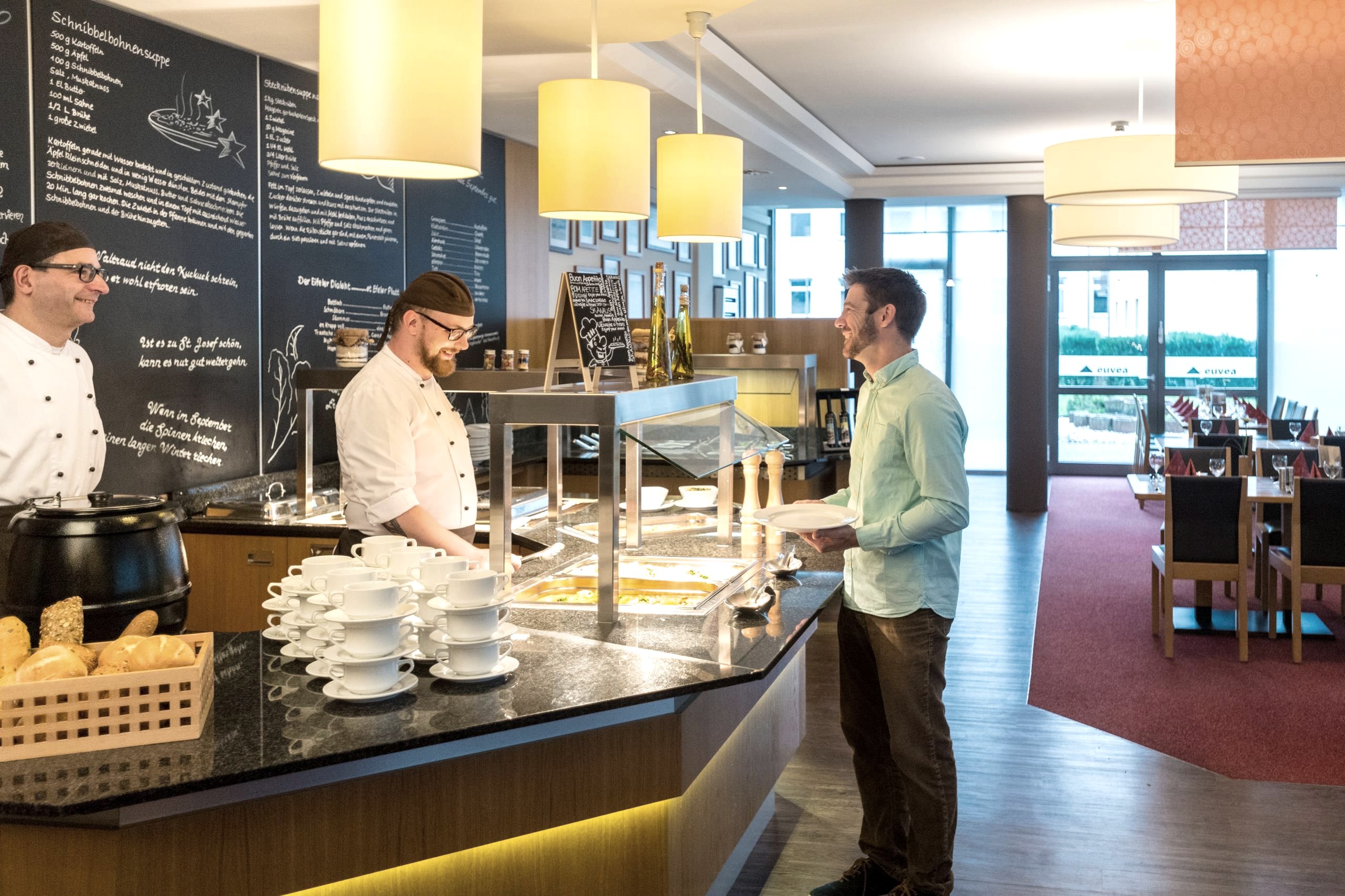 Das Restaurant Euvea bietet abwechslungsreiche regionale Spezialitäten - jeden Tag wechselnd, frisch in Buffetform.