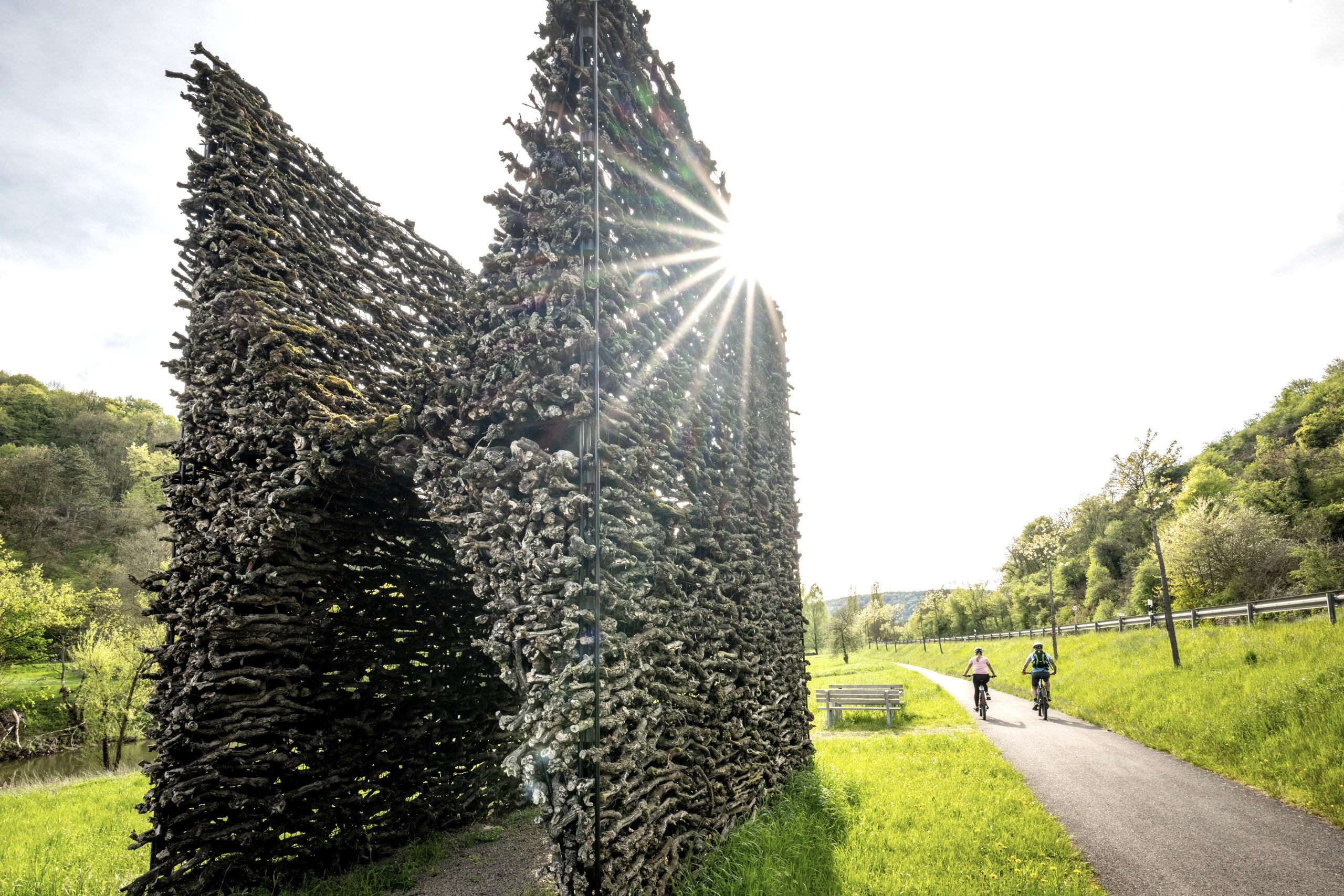 Der Sauer-Radweg verläuft teilweise auf einer ehemaligen Bahntrasse und entlang des Flusses Sauer. Diese Radtour vereint traumhafte Weinbergslandschaft und malerische Orte im Luxemburger Land miteinander. Interessant: Rund 200 Meter des Sauer-Radweges zwischen Metzdorf und Wintersdorf verlaufen „aufgeständert“, um das wertvolle Feuchtgebiet zu schützen. Eindrucksvoll auch die 336 Meter zählende Fahrt durch den beleuchteten Ralinger Tunnel, erlebenswert die abwechslungsreiche Natur, sehenswert die 1619 errichtete Burg Bollendorf - einst Sommerresidenz der ehemaligen Abtei Echternach.