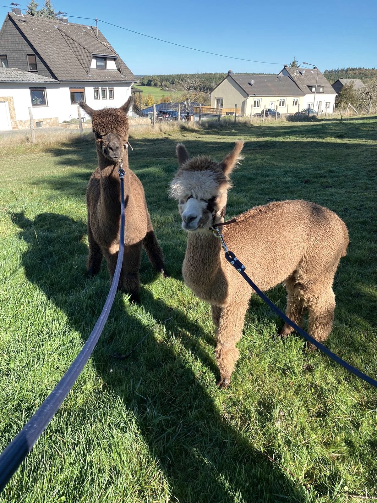 A walk takes you up and down across meadows and dirt roads, so please wear sturdy shoes. The tour comfortably lasts a good hour and there are breaks for animals and people. Children under the age of 12 can walk with an adult or accompany the person leading an alpaca.