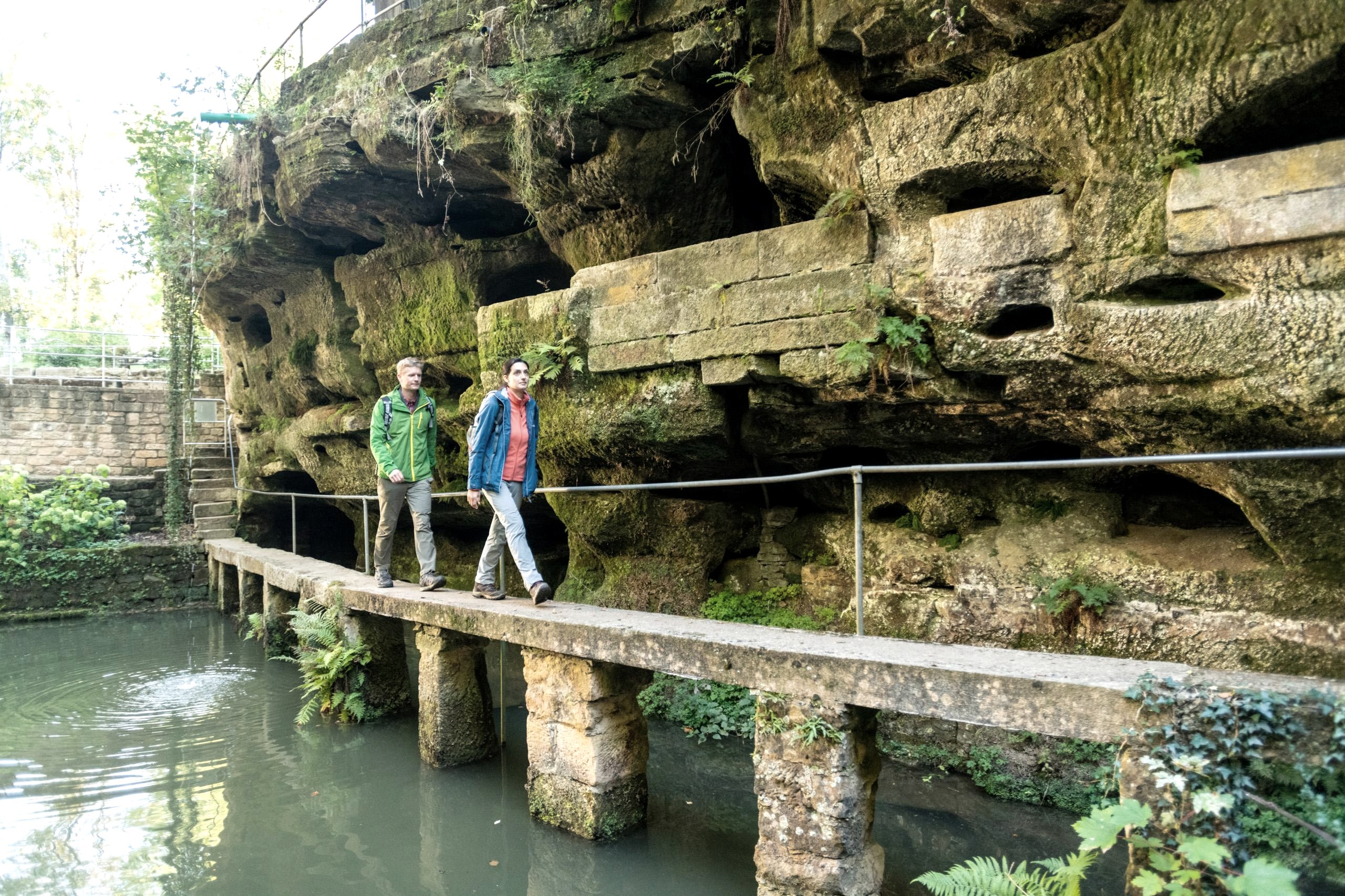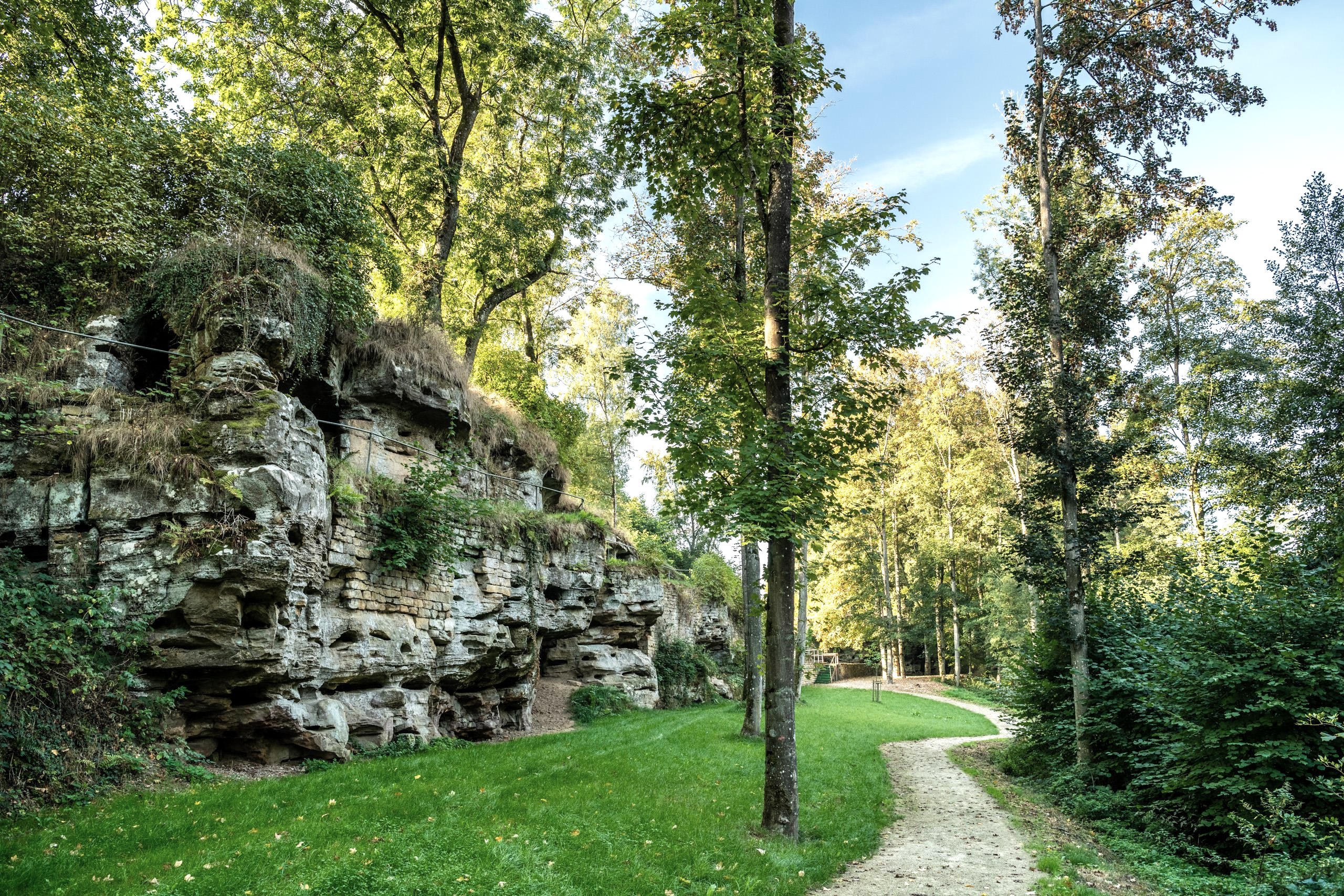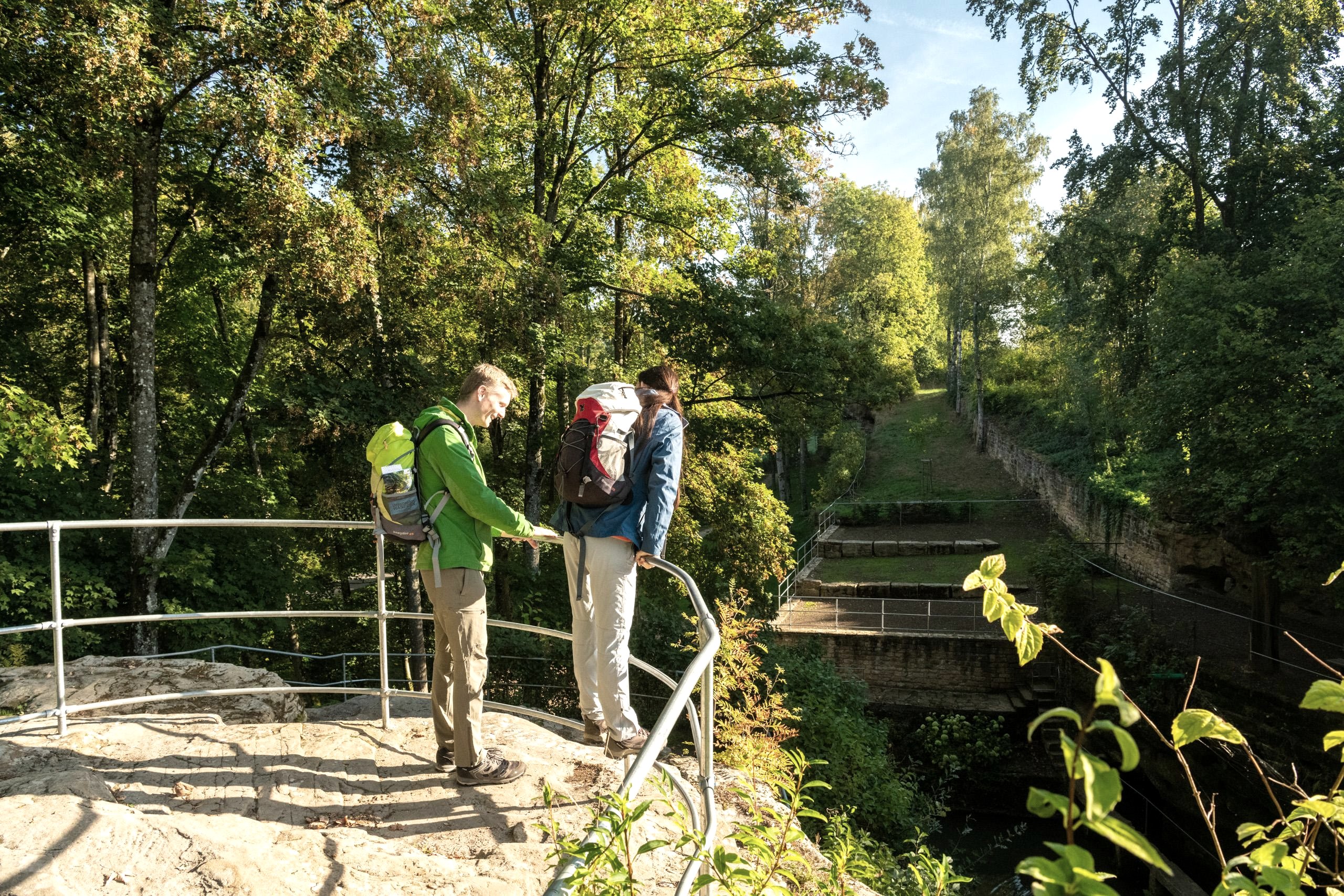 Romantic and bizarre: a small pond in the middle of rock faces with niches and caves, fed by the water of a spring and surrounded by terraces, pools, steps and bridges - this unusual, impressive complex is located at the entrance to the Gutenbach valley on the edge of the village of Ernzen.