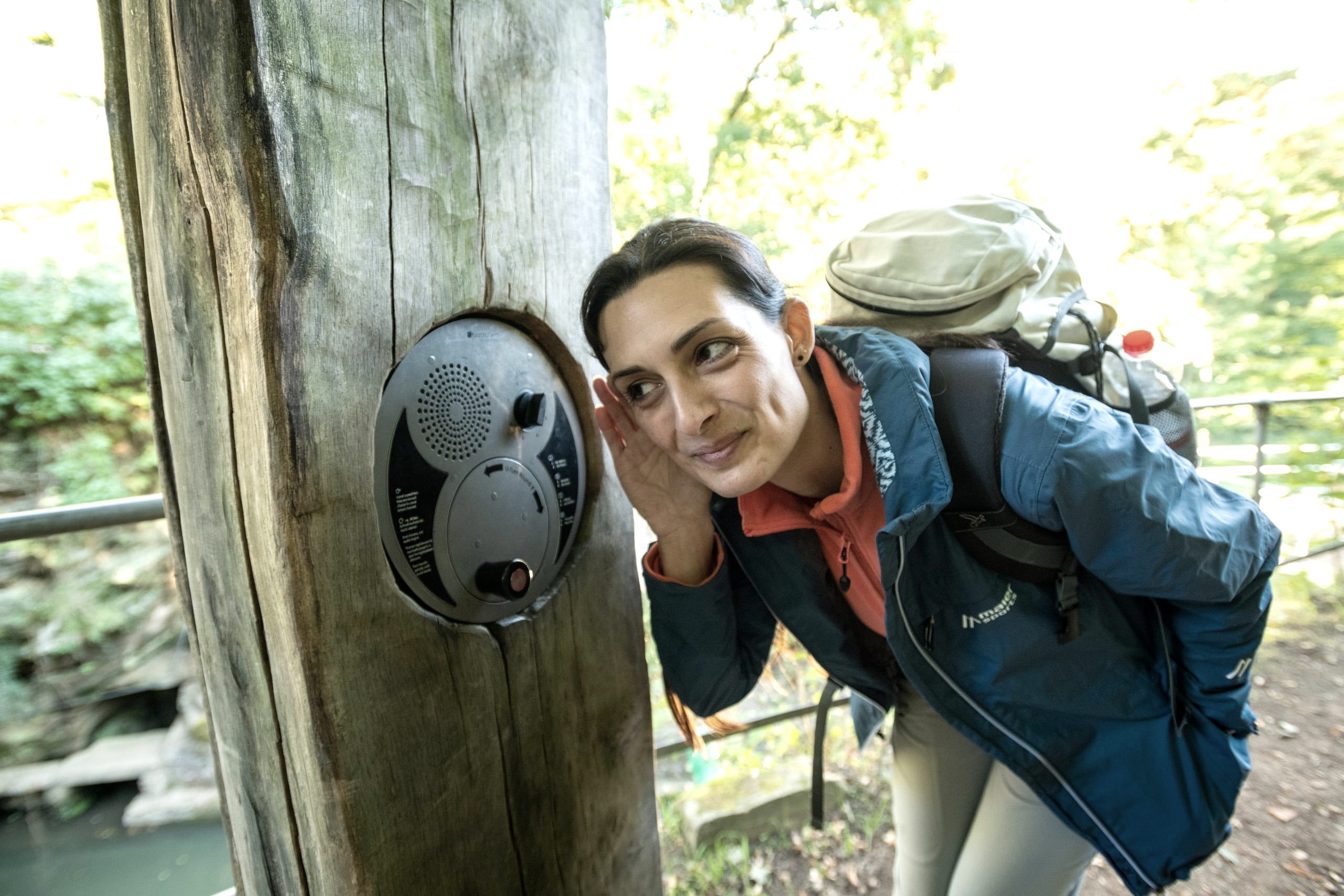 The "Lauschkurbel" ("listening crank"): you can try out an unusual "listening station" on a small platform above the pond: If you turn the crank, which is embedded in the wooden trunk, you will learn interesting and exciting facts about the history and special features of the Felsenweiher.
