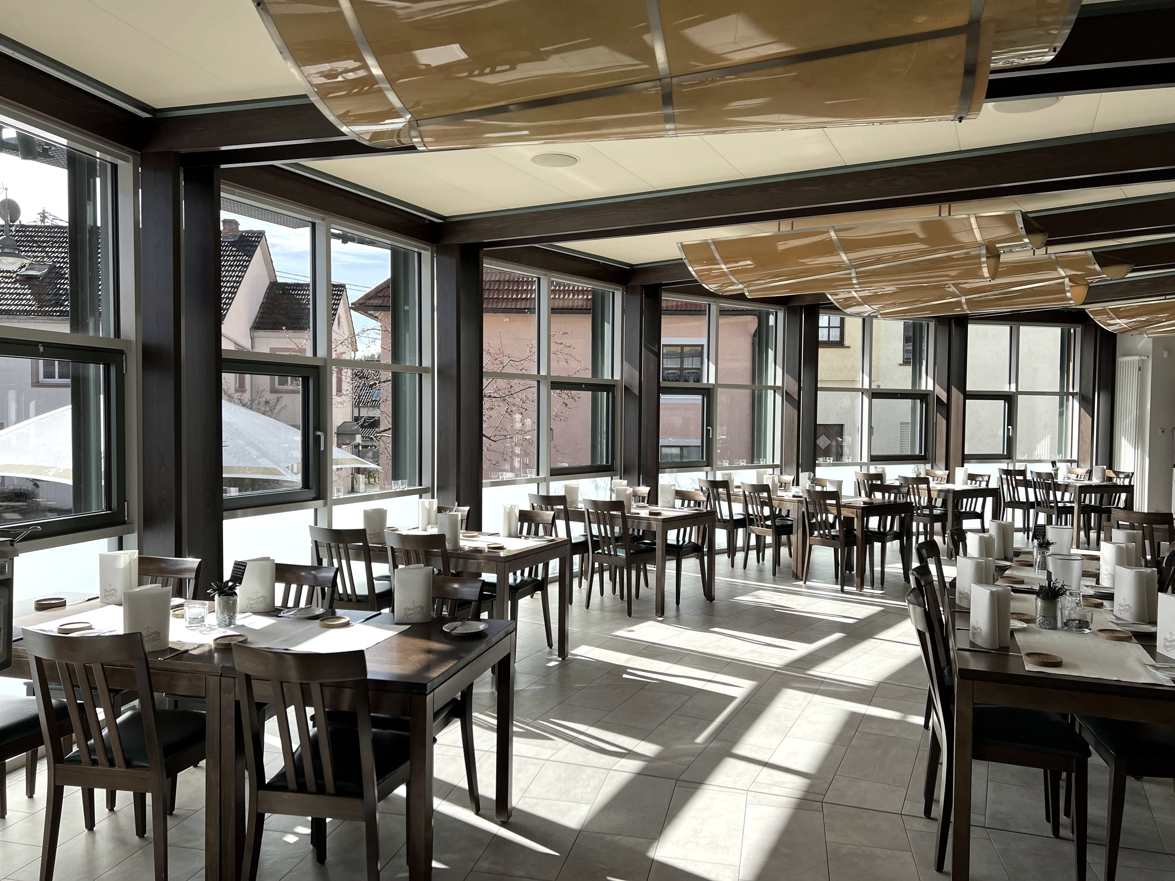 The kitchen of our restaurant offers you a variety of regional and international dishes, which we prepare with fresh ingredients, meat from our own butchery and a lot of love for detail. Seasonal specialities have a fixed place on our menu as well as popular classics. Our house offers space for parties of up to 120 people. Little guests will be delighted with a play corner and a separate children's menu. Even the youngest guests are well catered for with a changing table and high chair. Barrier-free access is just as much a matter of course as a toilet for the disabled. The restaurant area with separate access is ideal for families and company parties. The restaurant invites you to linger with seats at the bar and tables. Smoking is permitted in this area. Our terrace facing Fränkingerplatz, the beer garden and the in-house bowling alley complete our offer.