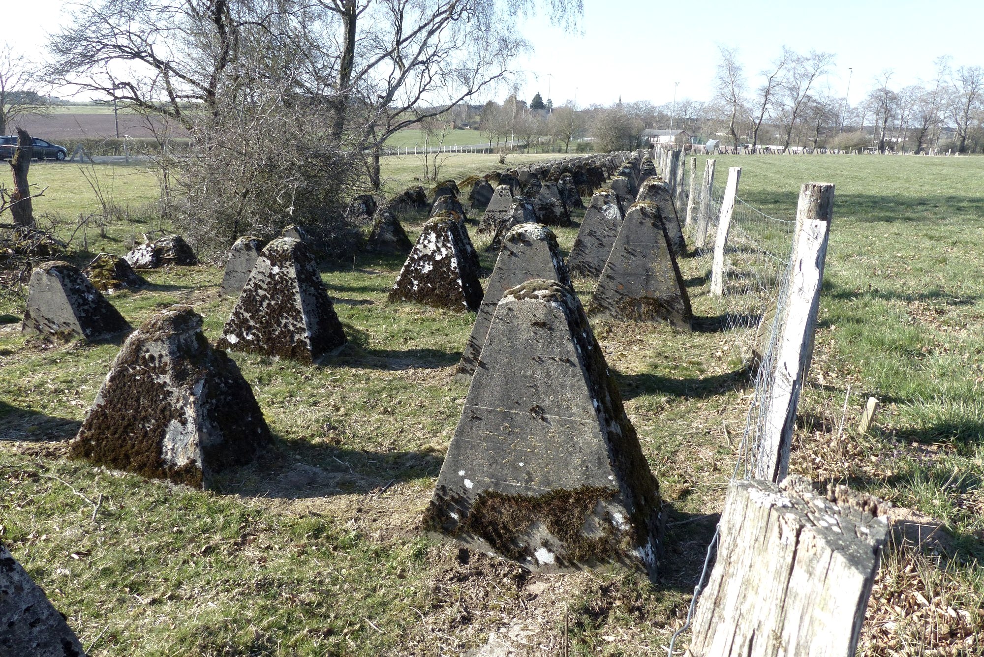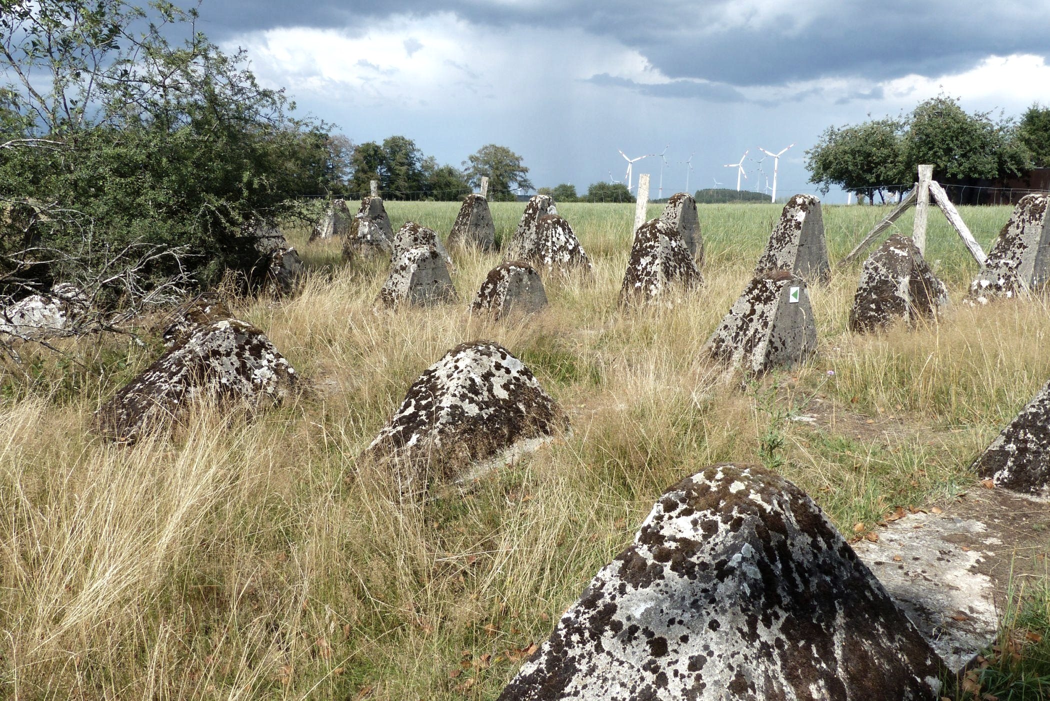 In the Großkampenberg, Leidenborn and Kesfeld areas, 115 bunkers and around 6 kilometers of cusp line were built. The highly visible cusp line shapes the image of the west wall up to the present day.
