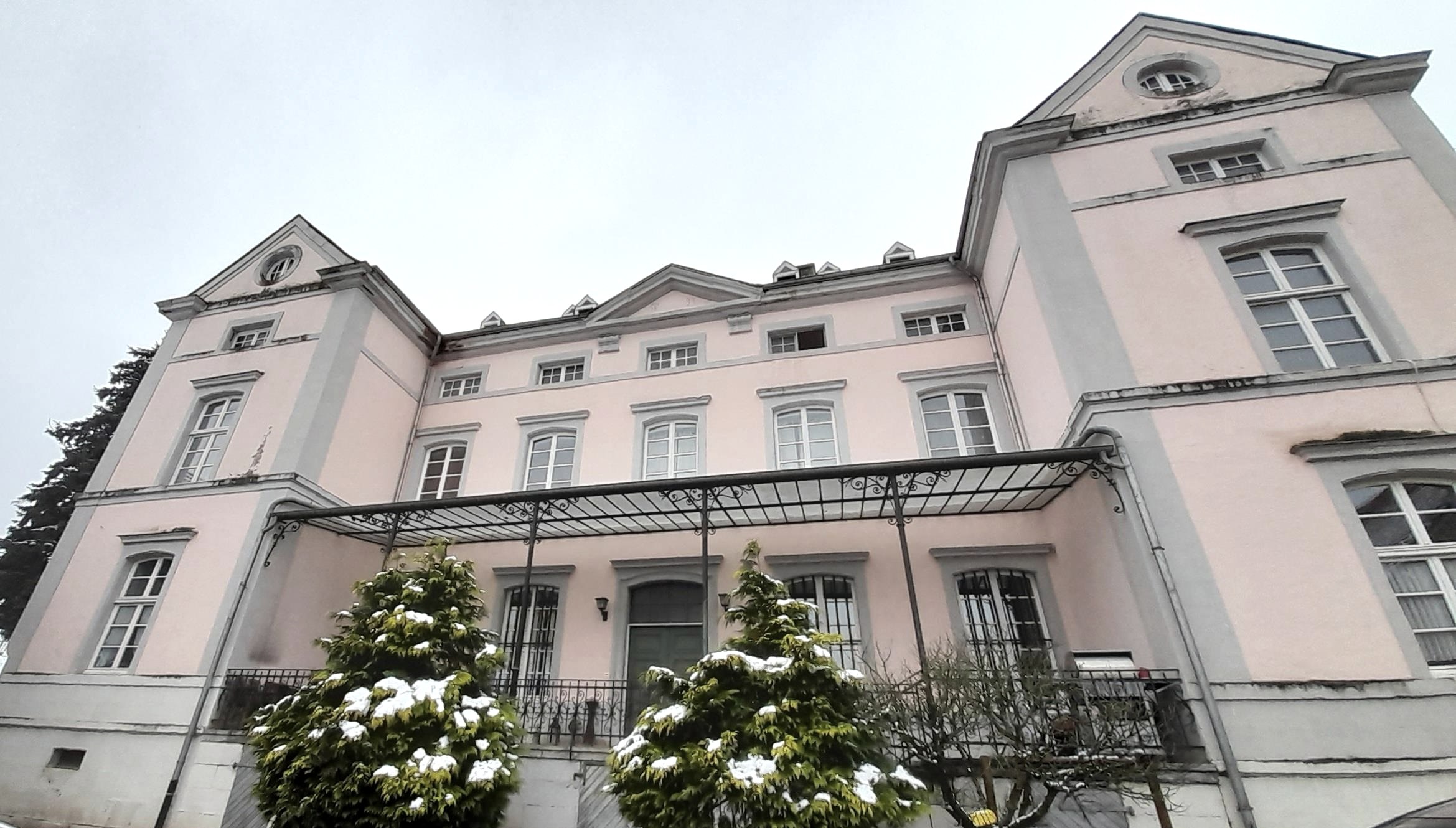 Although it was only built in its current form in 1823, the south-west wing still contains the remains of a medieval castle complex in the form of a five-storey residential tower with a square floor plan.