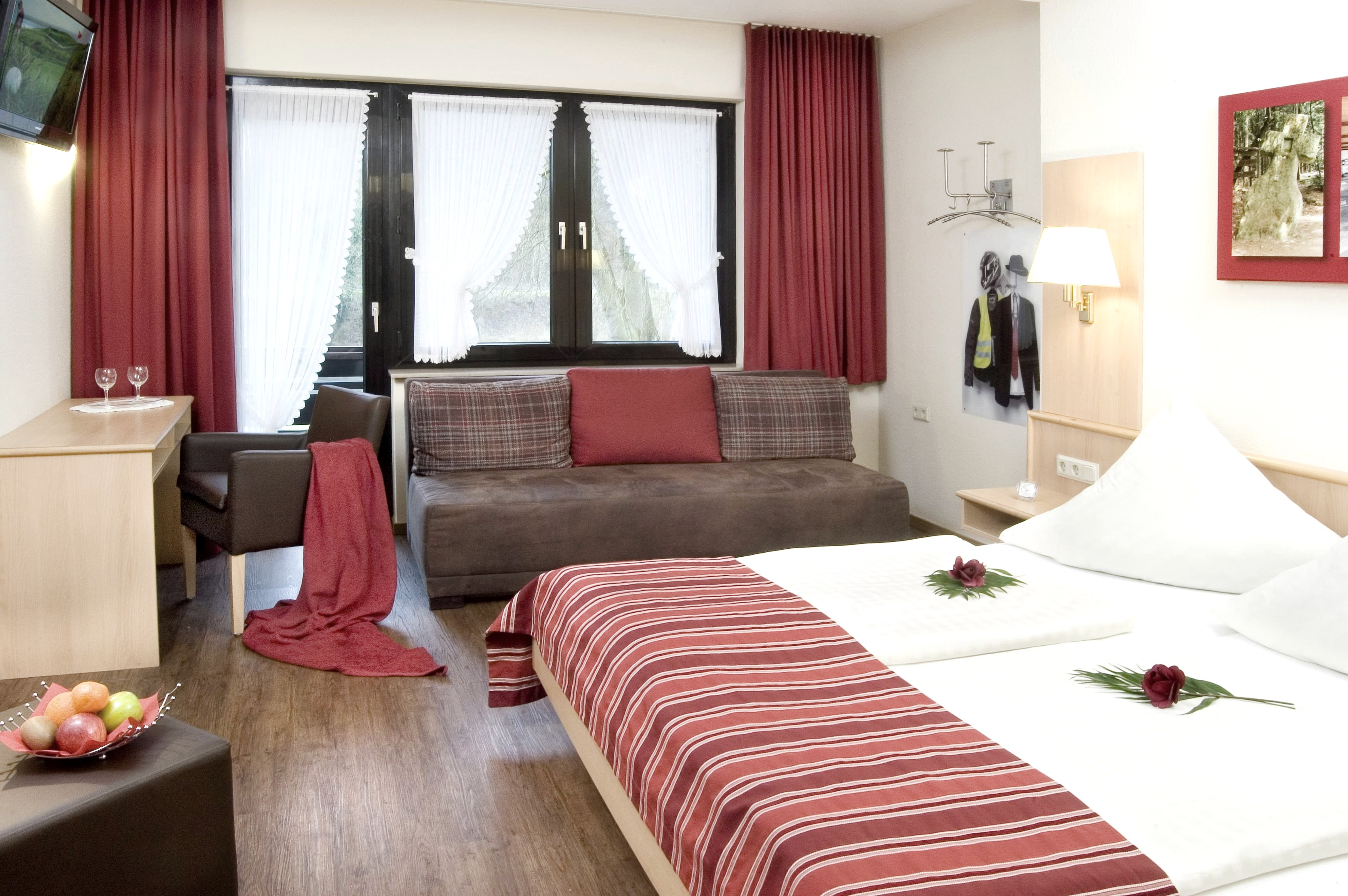 Welcome to Hotel Hauer in Bollendorf in the Eifel. The 3 star hotel is located next to the border to Luxembourg. You will look forward to a familiar managed, comfortable hotel with friendly service. FRIENDLINESS WITH TRADITION We offer our guests a familiy managed home for the best days of the year. With Katharina Hauer there is the fifth generation at work. The hotel is in family hands for more than 100 years. Modern 3 star comfort with all the advantages. Discover our hotel… THE BEST FROM THE REGIONAL KITCHEN We offer the best from the regional kitchen with a great mixture of tradition and modern creativity. Our homemade liquors, honey and the self-made smoked ham. Discover our restaurant…