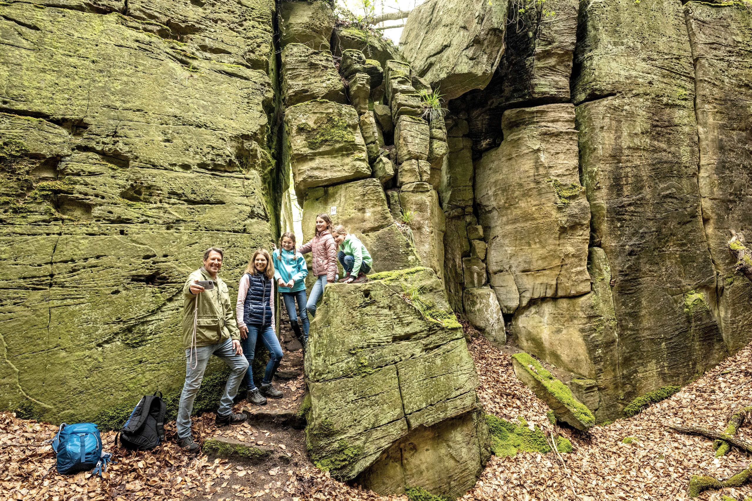Work of the devil or created by nature? Anyone hiking through the bizarre rock formations of the Ferschweiler plateau may ask themselves this question again and again, so unreal do some of the gorges, crevices and mighty towers of Lias sandstone appear. The dark gorge with metre-high walls at the edge of the plateau above the Sûre Valley is one of the many impressive legacies of the Ice Age rock slides and and does not bear the name "Teufelsloch" (Devil's hole) for nothing
