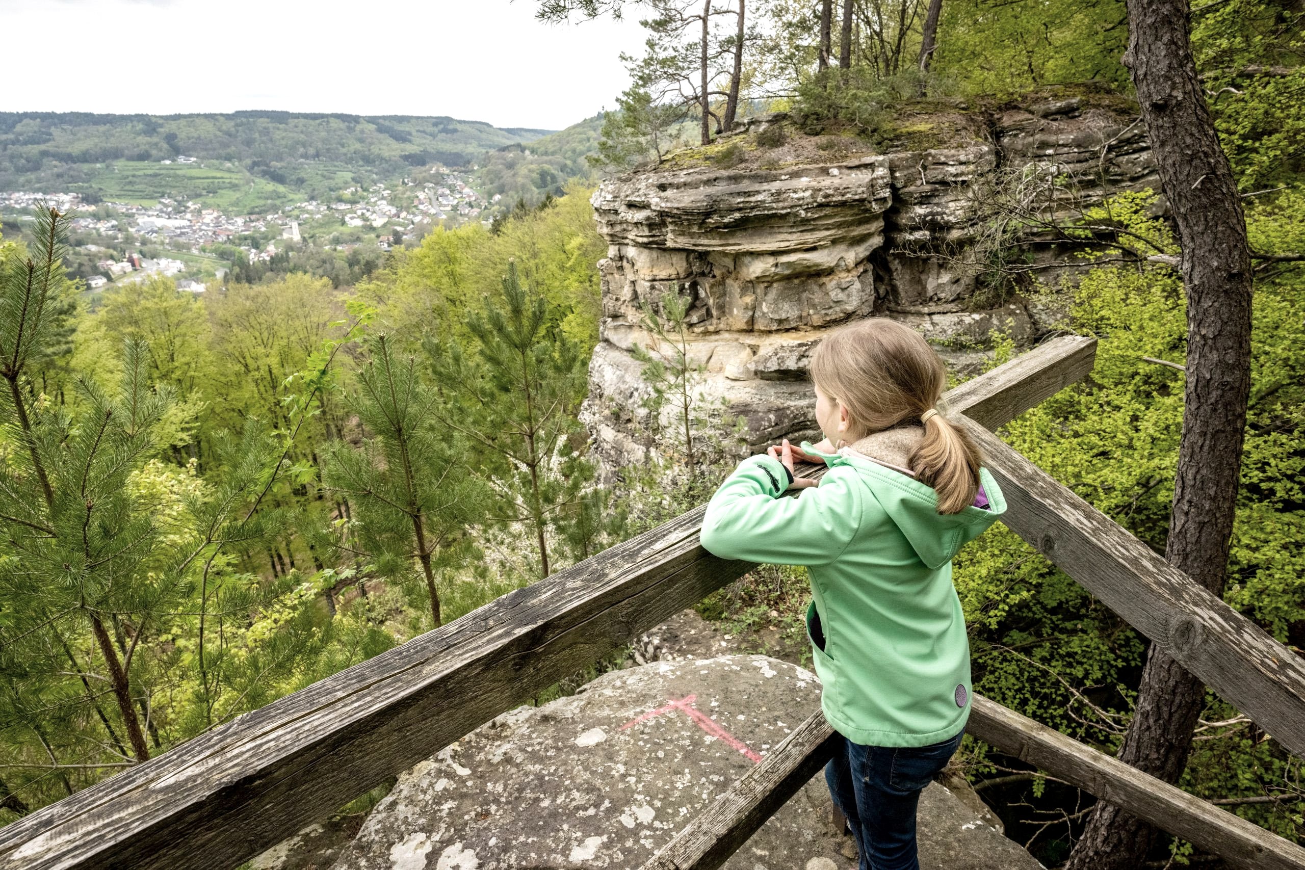Don't miss the view from the viewing rock above the Teufelsloch, which can be reached via a steep path. From here you can see far over the valley with its wooded rocky slopes and Bollendorf on the right bank of the Sûre.