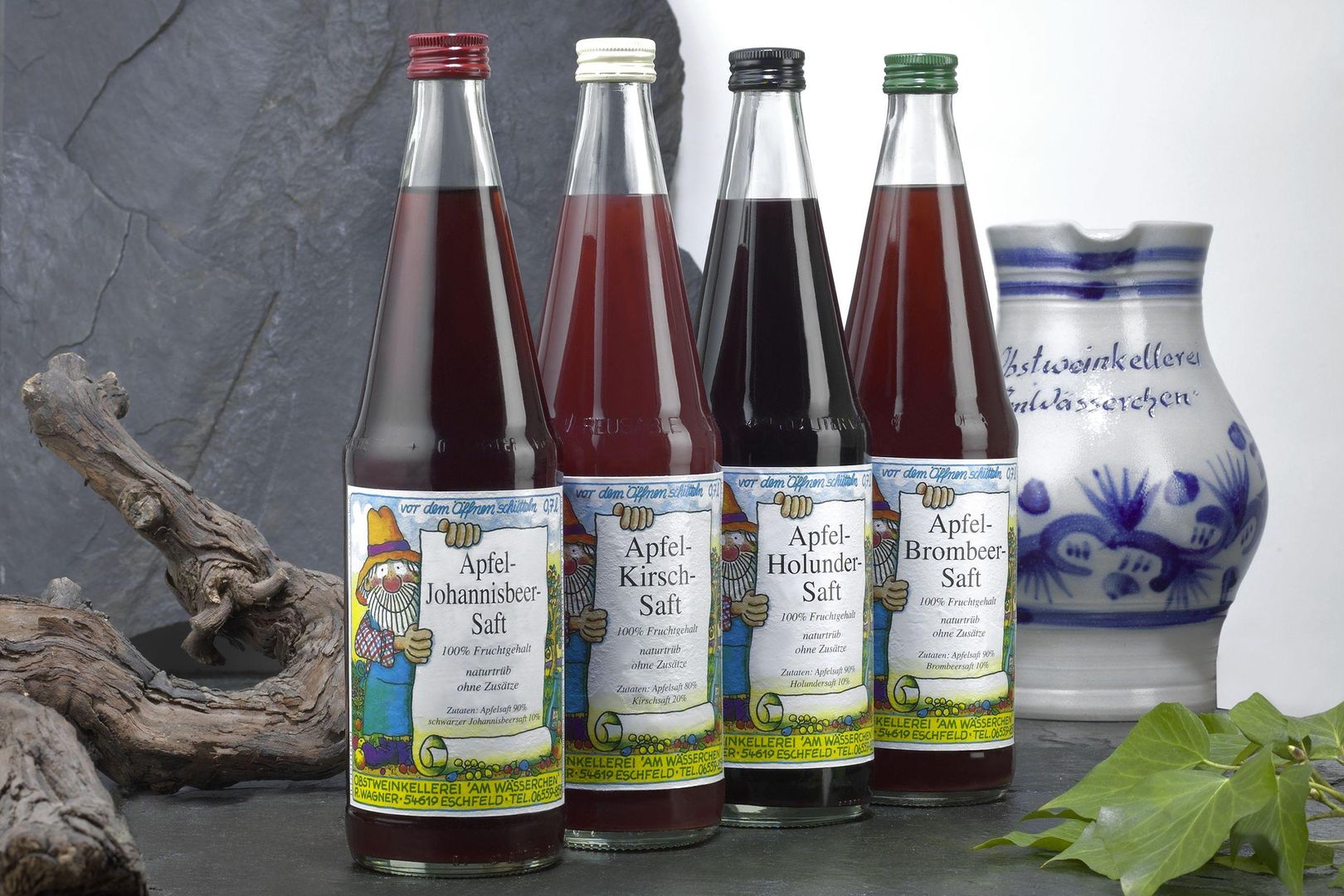 The range extends from the unknown rhubarb wine to the traditional mead honey wine or alcohol-free fruit juices. The juices all have 100% fruit content, no added sugar, no preservatives and are naturally cloudy. They are bottled fresh from the harvest and are not stored temporarily as concentrate.
