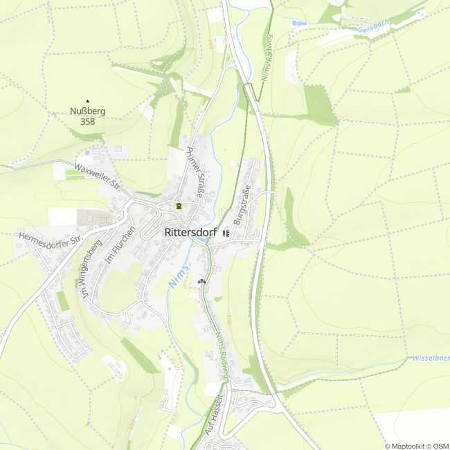 The fitness trail Rittersdorf combines a running and hiking trail with fitness equipment, wave benches and particularly beautiful places as a circular trail around Rittersdorf on a length of about 7 km. In addition to a callisthenics facility at the Wiesengrund playground, you will find fitness equipment at the Wisselbachsteg, at the kindergarten and at the so-called "Judenkreuz". The offer is aimed at young people from about 14 years and adults of all ages.