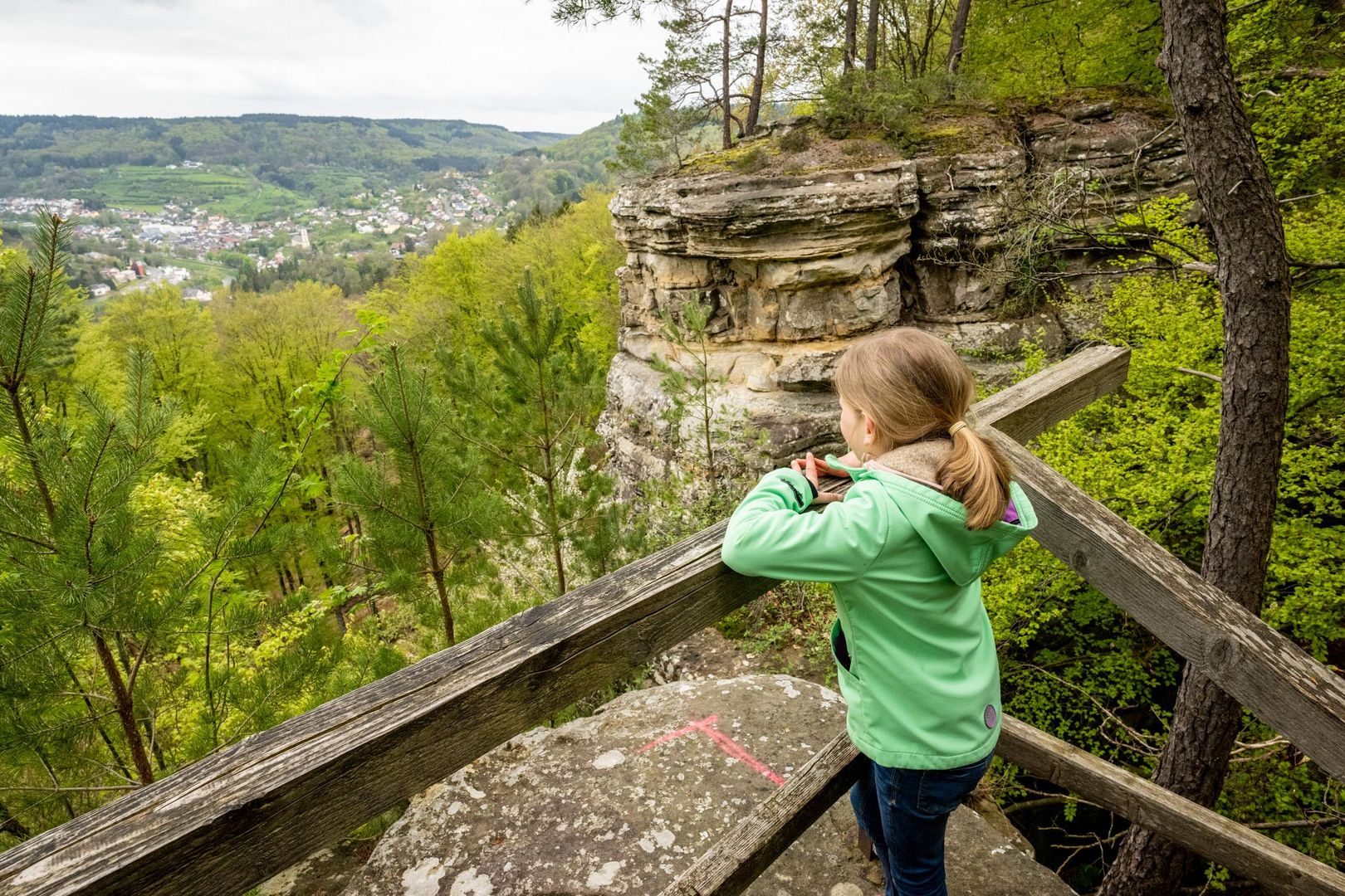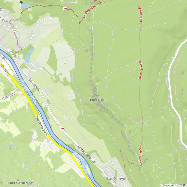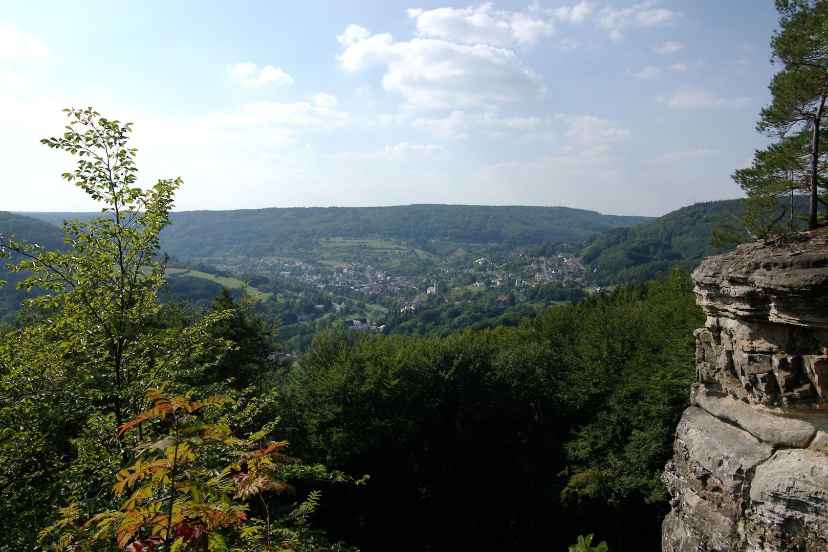 Don't miss the view from the viewing rock above the Teufelsloch, which can be reached via a steep path. From here you can see far over the valley with its wooded rocky slopes and Bollendorf on the right bank of the Sûre.