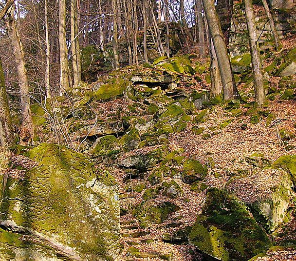 Une partie de ce circuit de randonnée au-dessus de Bollendorf traverse un monde rocheux féerique, et ce n'est pas pour rien que ce tronçon a été aménagé avec beaucoup d'amour en sentier de contes pour enfants. Outre les expériences naturelles particulières comme les gorges du loup et l'Ossenlay, ce sont surtout les nombreux monuments culturels qui impressionnent le long du parcours - des menhirs de l'âge de pierre aux "têtes de curés" en pierre des temps modernes :