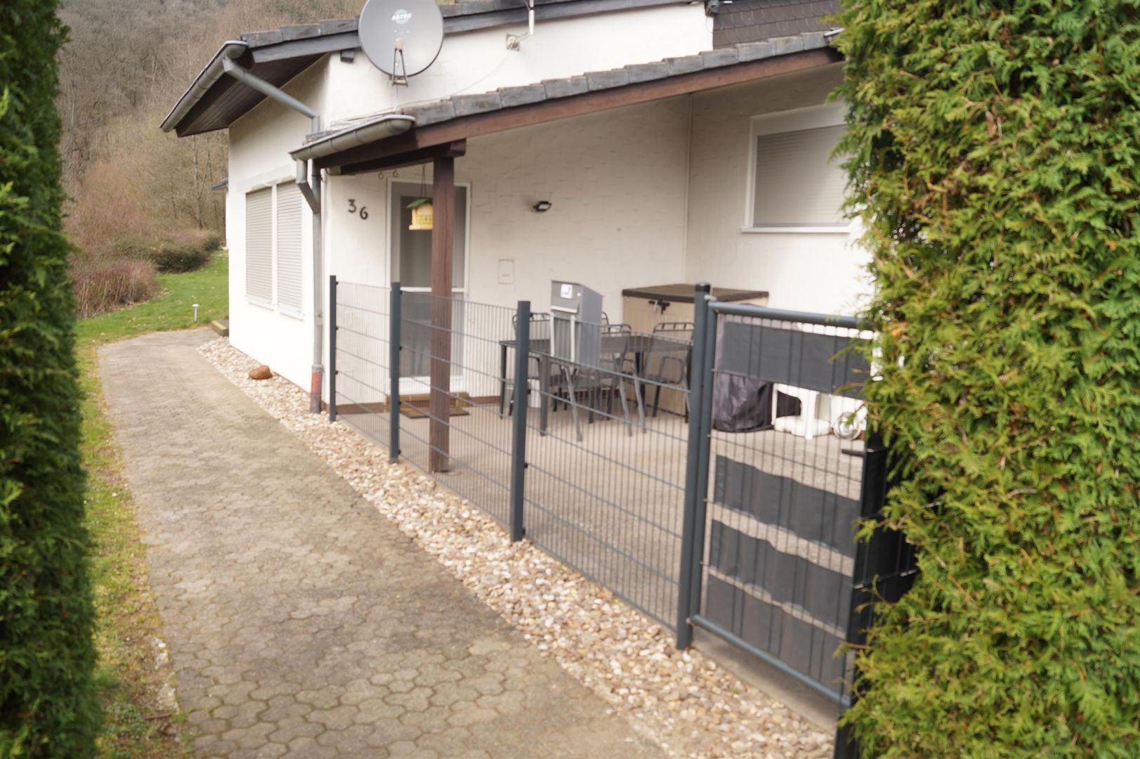 Notre maison est située dans un petit parc de vacances dans le voisinage immédiat du réservoir Bitburg. Comme il est situé dans la première rangée, il a une vue imprenable sur le réservoir. Dans le voisinage immédiat sont deux hôtels et plusieurs restaurants. La ville de Bitburg se trouve à 10 km, Trèves à 35 km et Vianden à 27 km. Toutes les activités de loisirs telles que la randonnée, le vélo, le jogging sont possibles juste à la porte, ainsi que le Prüm est une excellente zone de pêche. La terrasse de la maison est conçue pour que les petits enfants puissent profiter de cette insouciance. De plus, les chiens sont les bienvenus. La terrasse est clôturée et la maison récemment rénovée a des moustiquaires et des volets dans toutes les pièces.Notre maison a un nouveau coin salon confortable, une nouvelle cuisine et plus encore. avec une plaque vitrocéramique et un lave-vaisselle, une nouvelle douche à l'italienne avec siège rabattable assorti et un sommier à ressorts dans la chambre principale. La chambre principale dispose d'une télévision supplémentaire. La deuxième chambre dispose de deux lits simples avec sommiers à ressorts, la maison est équipée de Wifi (16MB), radio Internet avec système de musique, lit bébé, chaise haute, étendoir, poêle à bois, meubles de patio et sèche-cheveux.