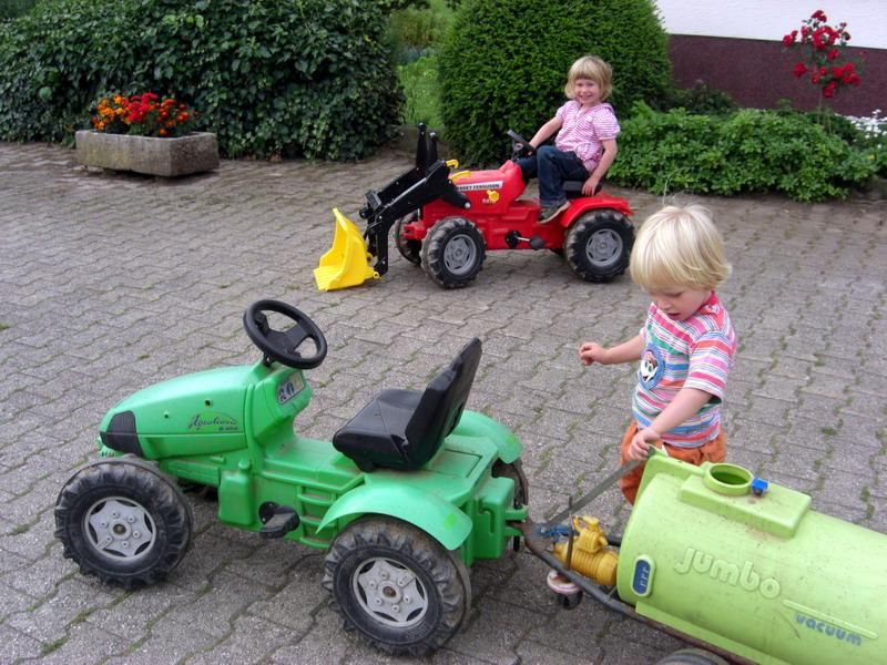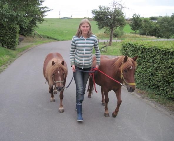 Animaux : vaches, veaux, canards, poules, lapins, chat, poneys et la chienne de la ferme Maike.