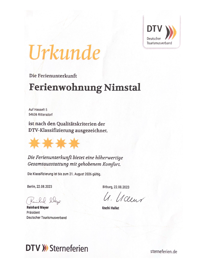 Rittersdorf se trouve au cœur du parc naturel de l'Eifel du Sud. C'est le point de départ de toutes vos activités. Que vous soyez amateur de randonnée ou de vélo. La piste cyclable et le sentier de randonnée démarrent directement devant la porte de la maison. Vous avez une vue magnifique sur la vallée de la Nim et pouvez profiter de la nature. Notre terrasse ensoleillée vous invite à vous détendre en admirant la nature. De nombreux buts d'excursion sont facilement accessibles à partir de Rittersdorf. Par exemple, le lac de barrage de Bitburg, le parc d'attractions Eifelpark Wild et Gondorf, les cascades d'Irrel ainsi que le parc des dinosaures et le centre du parc naturel Teufelsschlucht à Ernzen, Trèves - la plus ancienne ville d'Allemagne, la pittoresque Echternach (Luxembourg), la belle petite ville de Bernkastel sur la Moselle, les maars près de Daun et bien d'autres choses encore. Des paysages magnifiques, beaucoup de nature, une bonne offre de loisirs et de superbes attractions - ce sont des vacances dans le sud de l'Eifel !