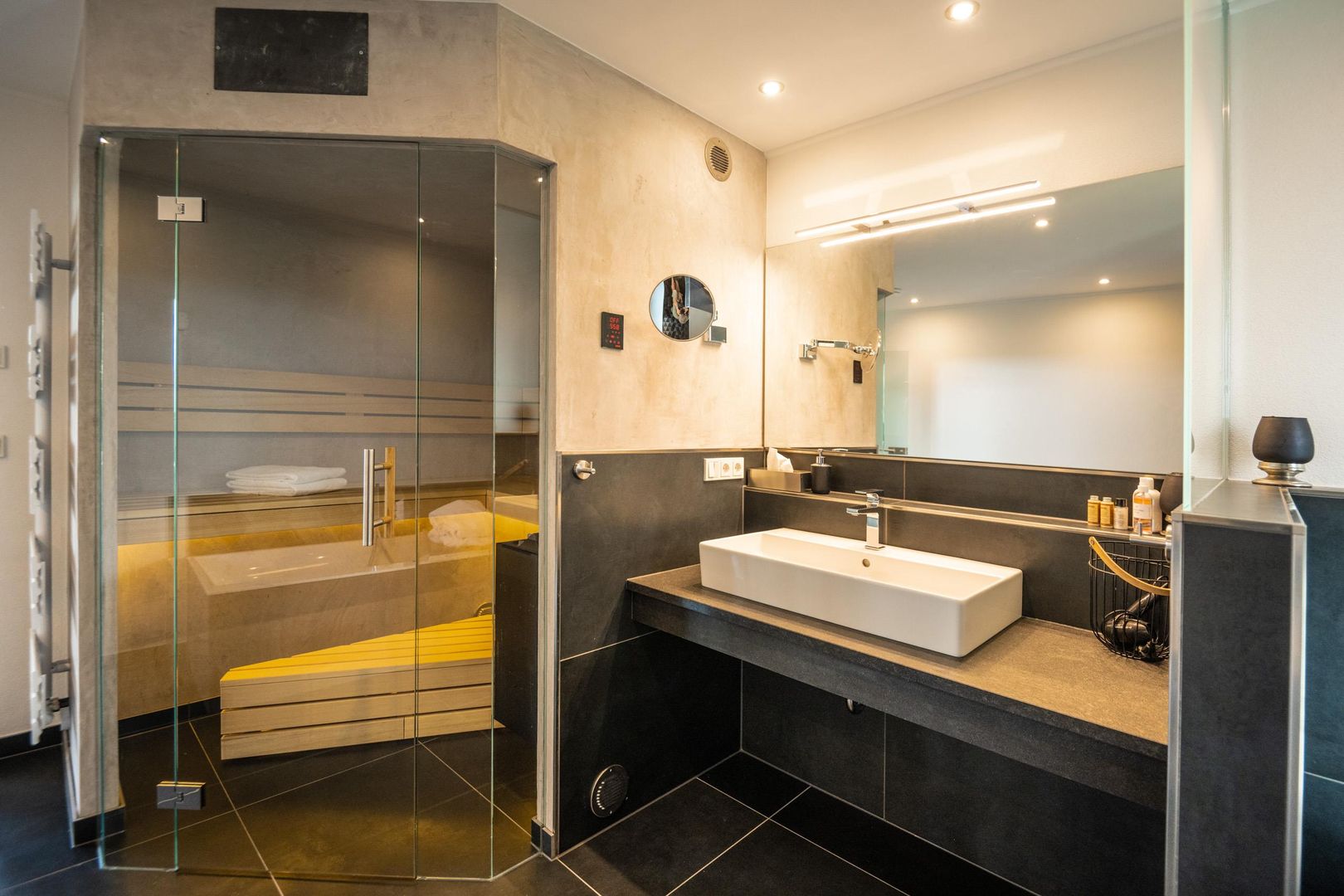 L'architecture moderne et transparente du Genusswerk ouvre de magnifiques vues panoramiques sur le vaste paysage vallonné et verdoyant du parc naturel de l'Eifel du Sud. Les dix suites sont aménagées de manière très haut de gamme et individuelle. Certaines disposent même d'un jacuzzi privé. La terrasse ensoleillée du Genusswerk est l'endroit idéal pour se détendre tout en laissant l'environnement idyllique agir sur soi sans être dérangé.