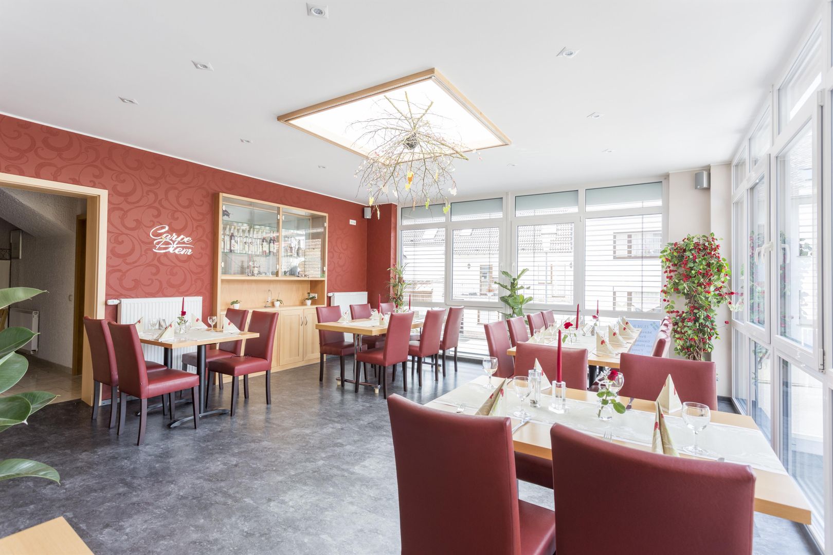 Räumlichkeiten für kleinere und größere Gesellschaften, Kegelbahn, Liegewiese, Biergarten, Wintergarten und Parkplatz.