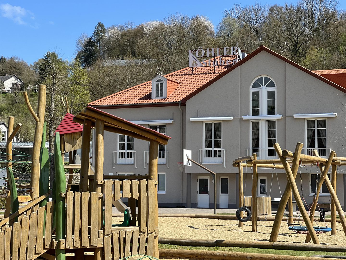 Gemütliche Gastlickeit und geselliges Beisammensein finden Sie in unserem Restaurant, bestehend aus Bierstube, Köhler-Stuben, Hopfengarten und Terrasse mit toller Aussicht zum Schwimmbad, Sportplatz und ins Prümtal. An jedem Wochentag bieten wir ein preiswertes 3-Gang-Mittagsmenü. Internationale, italienische und regionale Küche. "Ob Dinner oder Snack, wir schicken keinen weg!"