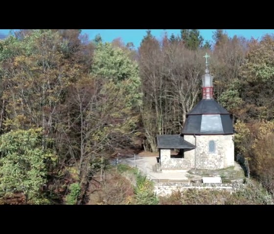 Dort gibt es eine Aussichts-Plattform vor der Kapelle.