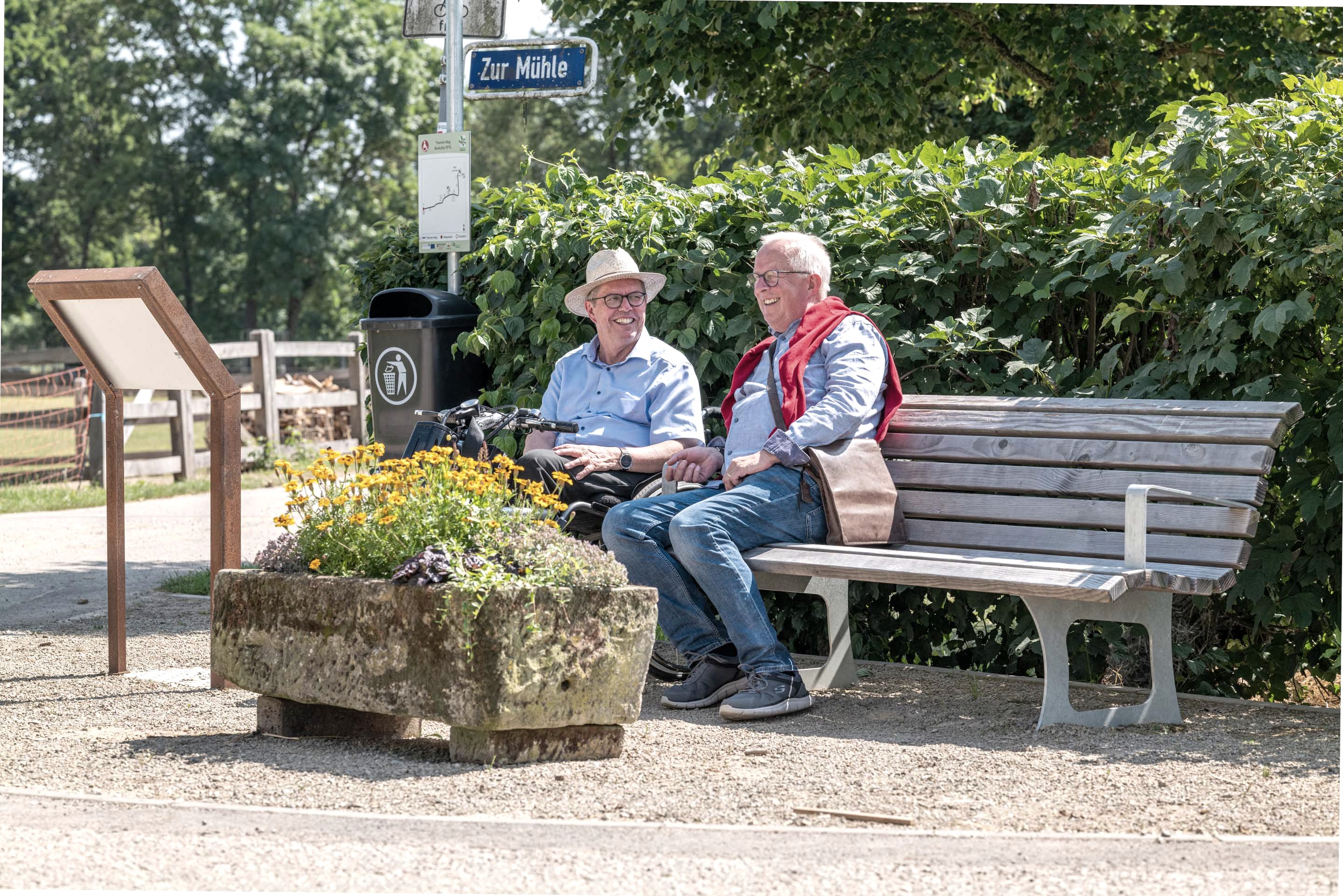 „Der Weg ist eine Besonderheit, weil er den Gästen die Vielfalt der Bausubstanz im Sinne der Baukultur EIFEL vor Augen führt. Der Startpunkt des 550 Meter langen Wegs befindet sich in der Nähe vom barrierefreien Parkplatz bei der Kirche in der Europastraße. Dort ist auch das neue barrierefreie WC zu finden, das mit einem Euroschlüssel geöffnet werden kann. Auf dem Weg gibt es unterfahrbare Stelen mit Texten zu den historisch bedeutsamen Gebäuden sowie Rastplätze, die zum Erholen einladen“, erläutert Indra Schaperdoth, Fachkraft für barrierefreien Tourismus im Naturpark Südeifel.
