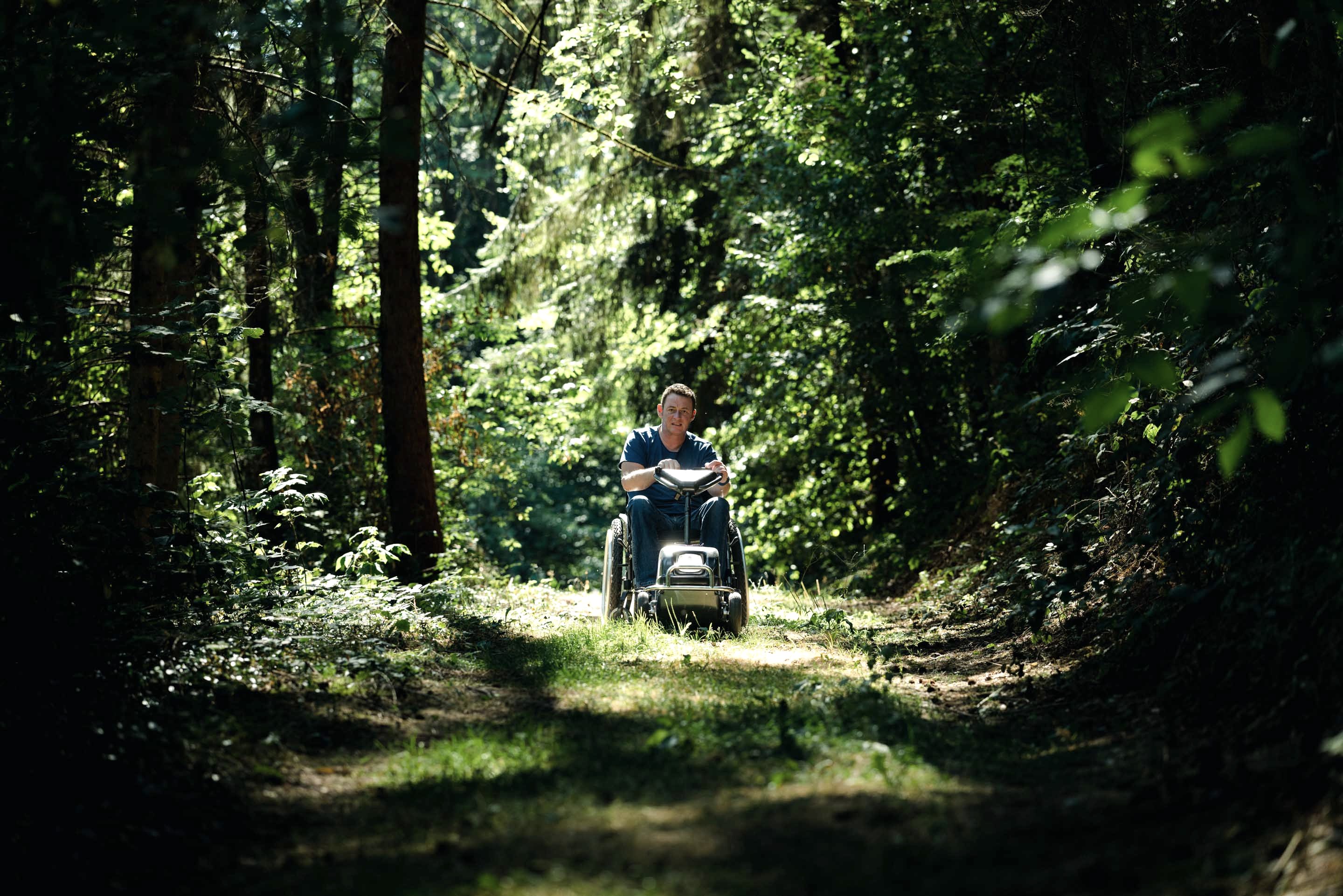 Ein wichtiger Bestandteil bei dieser Umsetzung sind Zuggeräte für Rollstühle auf Wanderwegen. Im Naturpark Südeifel gibt es Zuggeräte, sogenannte Swiss-Tracs. Sie ermöglichen rollstuhlfahrenden Erwachsenen und Kindern im Alltag mehr Mobilität und Unabhängigkeit. In wenigen Sekunden kann der Elektroantrieb mit dem Rollstuhl verbunden werden. So können selbstständig und kippsicher Absätze oder andere Hindernisse passiert werden. Steigungen und unebenes Gelände können mit einem Zuggerät mühelos überwunden werden. Die Akkukapazität eines Zuggeräts ist für die Wegdistanzen auf den ausgewiesenen Wegen ausreichend. Dr. Holger Tülp hat die Zuggeräte ausgiebig getestet, hier sein Fazit.