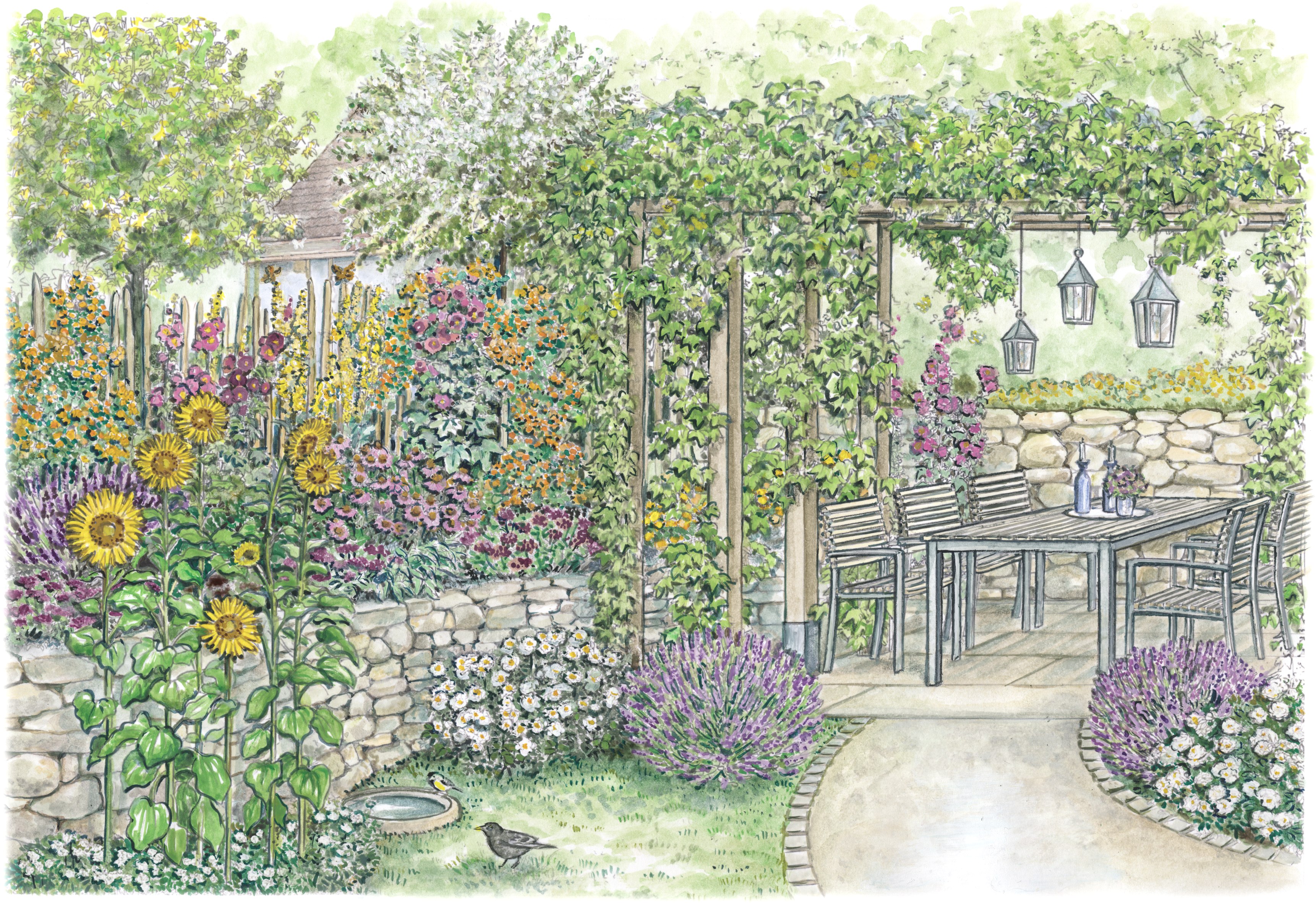 Geeignete Gestaltungselemente und Materialien für den Garten.