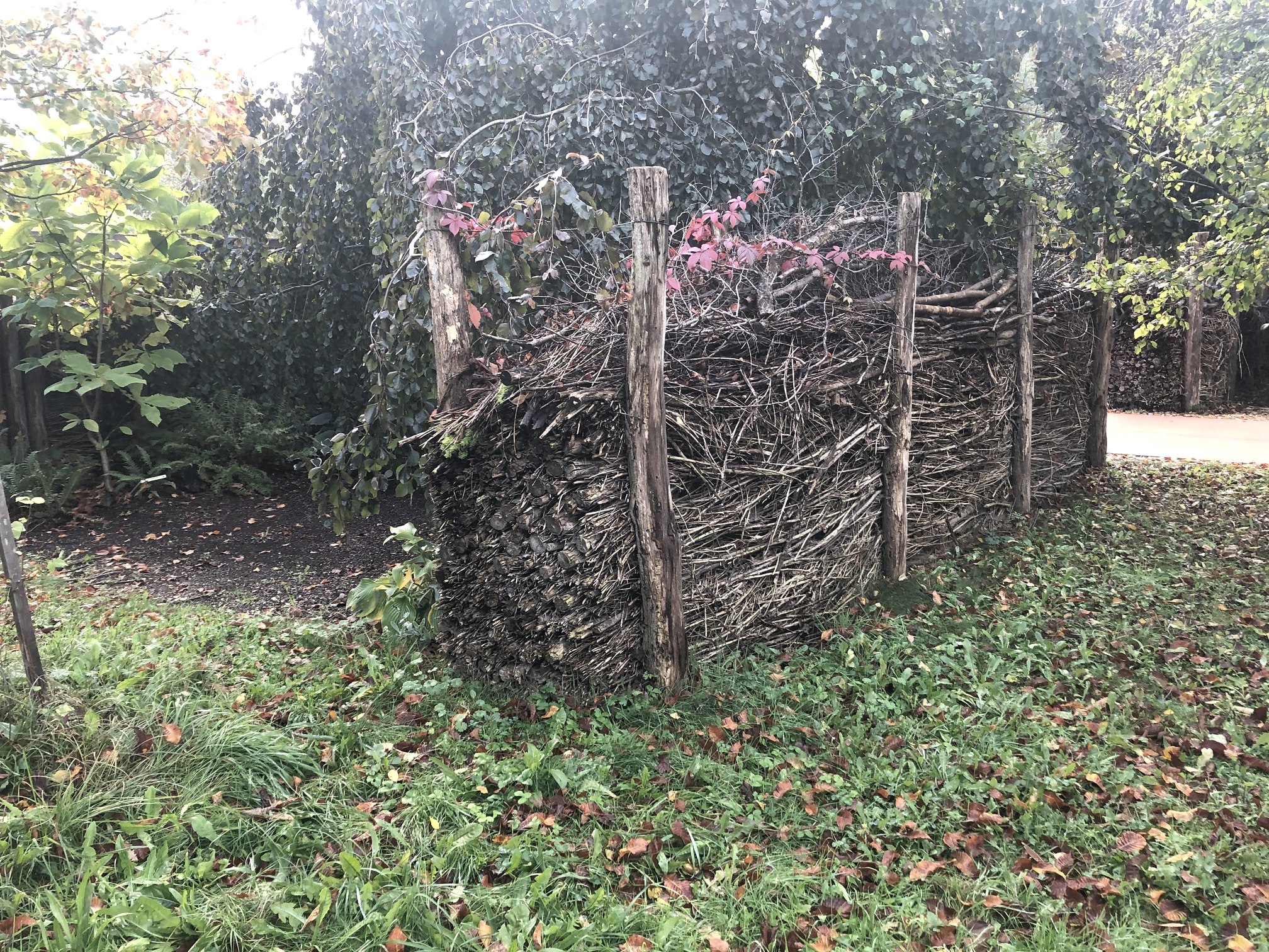 Der Rückschnitt kann direkt für den Aufbau einer Benjeshecke genutzt werden. Die Benjeshecke ist beispielsweise für Vogelarten wie Amsel und Zaunkönig ein guter Rückzugsort. Aber auch kleine Säugetiere (Igel und Siebenschläfer), Reptilien (Zauneidechse), Amphibien (Erdkröte) oder Insekten (Wildbienen) fühlen sich in der die Benjeshecke wohl. Sie sorgen als Nützlinge für einen schädlingsfreien Garten. Eine Benjeshecke besteht aus locker aufgehäuften Ästen und Zweigen, die durch im Boden eingebrachte Holzpfähle befestigt und dadurch stabil werden. Alternativ dazu ist es auch möglich, kleine Bäume als Stabilisatoren zu pflanzen. Die Pfähle müssen dem später in die Zwischenräume geschichteten Totholz genug Stabilität verleihen, damit sorgfältig geschichtet werden kann. Der Gehölzschnitt sollten möglichst aus Hartholz bestehen, passend sind etwa Buche und Eiche. Es ist empfehlenswert, unten größere Äste zu verwenden, um Igeln genügend Wohnraum anzubieten.
