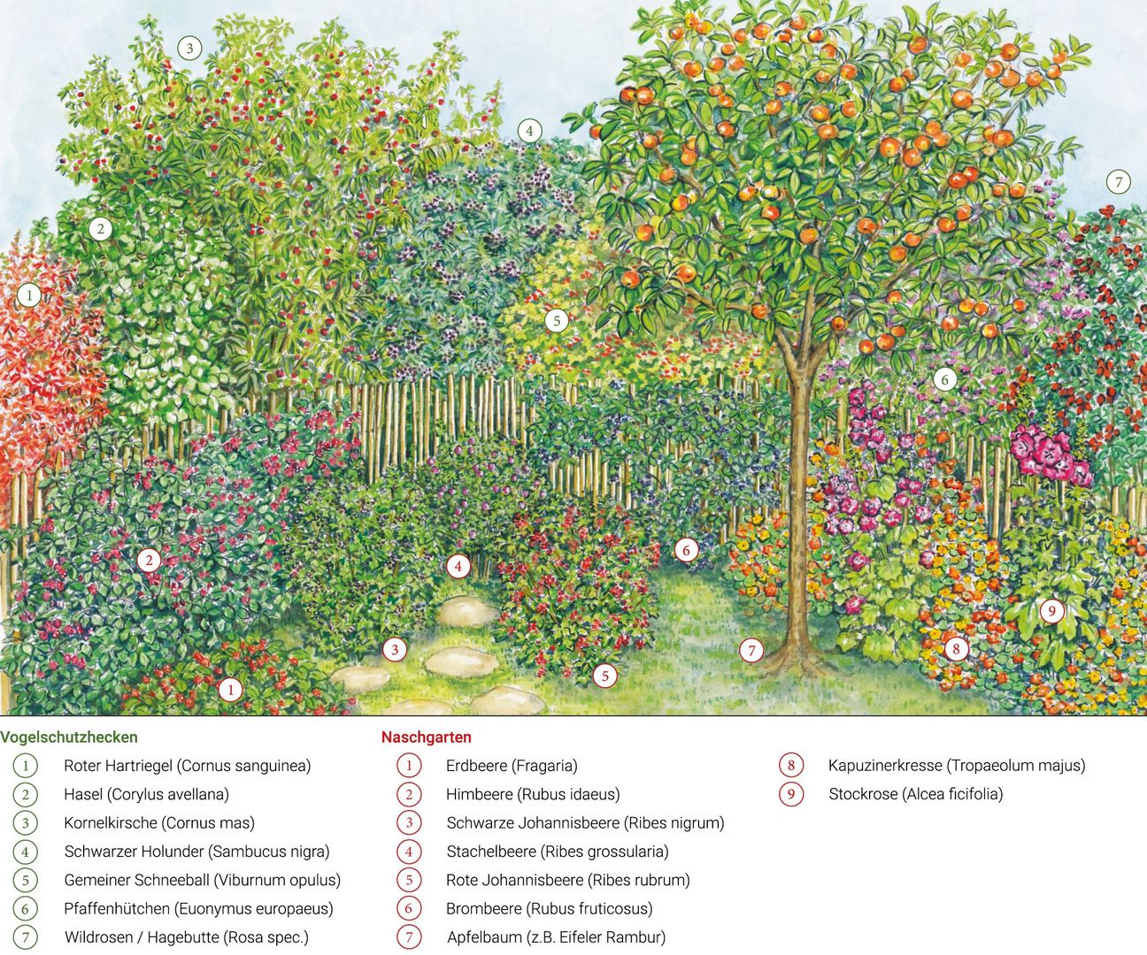 Wer gerne Vögeln ein Zuhause geben will und gleichzeitig sein Grundstück mit Einfriedungen abgrenzen möchte, kann dies mit einer gemischten bunten Hecke aus heimischen Gehölzen erreichen. Sie ist Sicht- und Windschutz, für Vögel eine gute Nahrungsquelle (Insekten, Früchte) und bietet Nistmöglichkeiten sowie Landeplätze. Optisch sorgen diese Hecken mit ihrer Blütenvielfalt für viel Abwechslung, zudem können viele der Beeren und Blüten zu Tees, Marmeladen oder Sirup zubereitet werden. Geeignete Pflanzen sind etwa Schwarzer Holunder, Weißdorn und Schlehe.