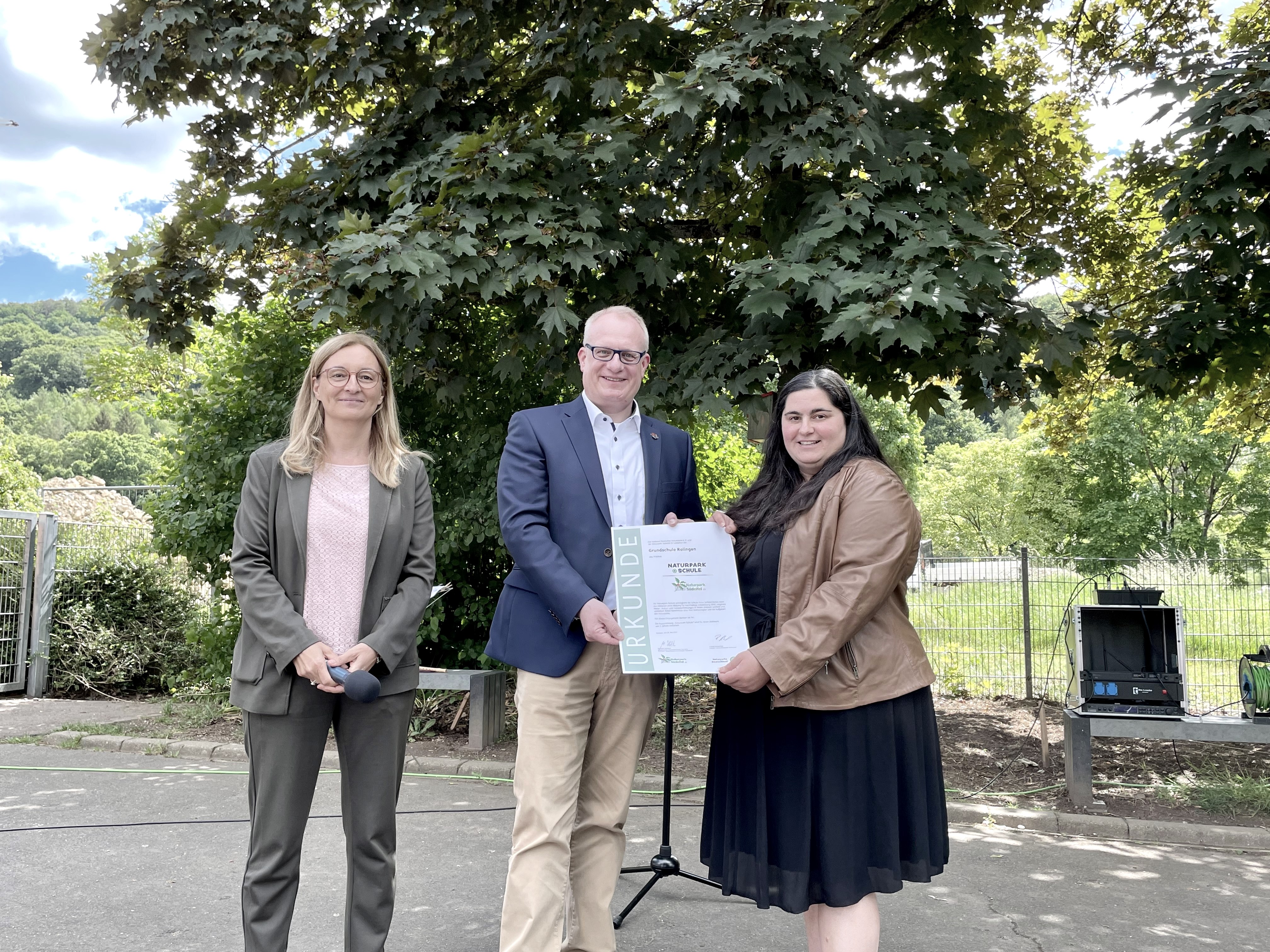 Um als „Naturpark-Schule“ aber zunächst einmal zertifiziert werden zu können, müssen verschiedene Voraussetzungen erfüllt sein: Die Schule liegt im Naturpark-Gebiet, das Thema „Naturpark-Schule“ muss im Leitbild der Schule verankert sein und eine Kooperationsvereinbarung zwischen Naturpark, Schule und Träger muss geschlossen werden. Darüber hinaus ist nachzuweisen, dass jedes Kind mindestens einmal pro Schuljahr ein Thema des Naturparks im Unterricht oder darüber hinaus behandelt. Zudem findet einmal im Jahr eine Fortbildung für die pädagogischen Fachkräfte statt. Im Naturpark Südeifel ist die Grundschule Langsur im Herbst 2020 als erste „Naturpark-Schule“ gestartet und wurde im Juni 2022 als Naturpark-Schule zertifiziert. Als Startmodul wird die Geologie in der Umgebung der Grundschule Langsur den Kindern erlebnisreich vermittelt. Was z.B. ist ein Gestein und wie unterscheiden sie sich? Dies lernen die Kinder sowohl praktisch mit dem Geologenhammer als auch im faszinierenden Detail unter dem Mikroskop. Im Dezember 2020 ist die Grundschule Ralingen als weitere Naturpark-Schule hinzugekommen und wurde im Mai 2022 als erste Schule als Naturpark-Schule zertifiziert. Im Juli 2021 ist die Grund- und Realschule plus Neuerburg als Naturpark-Schule gestartet und wurde im Mai 2023 zertifiziert. Die Grundschule Daleiden wurde im Juni 2024 zertifiziert als Naturpark-Schule, die Grundschule Wolsfeld im September 2025.