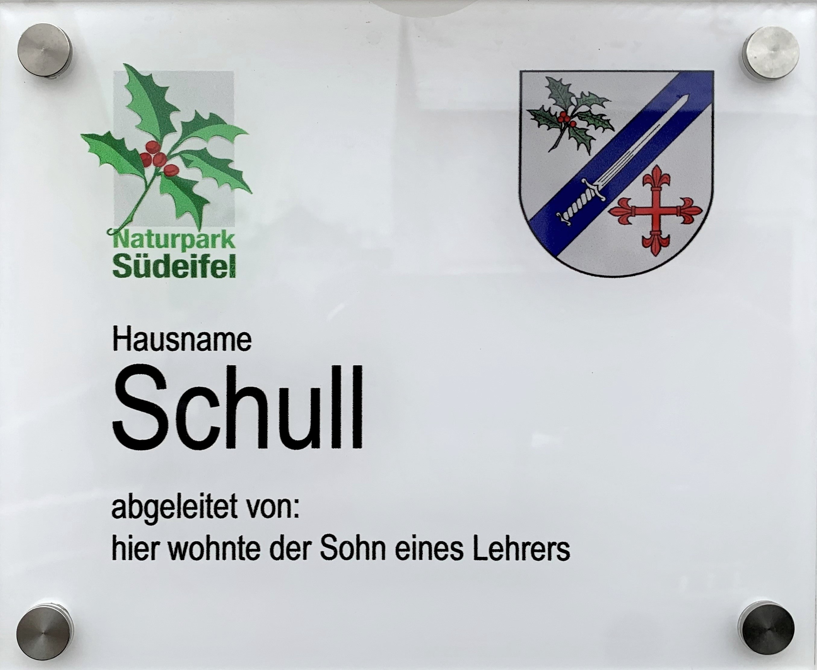 Der Naturpark Südeifel fördert Plexiglasschilder mit Hausnamen an 112 Häusern.
