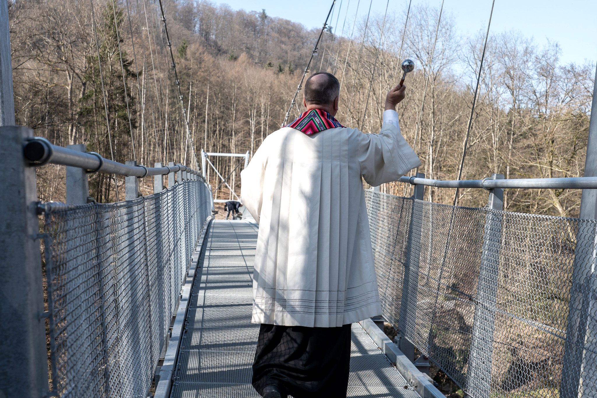 „Viele Personen haben an diesem Vorhaben mitgearbeitet, angefangen bei der Projektkoordination durch den Zweckverband Naturpark Südeifel, die Verbandsgemeinde Südeifel und die Ortsgemeinde Irrel bis hin zu den beteiligten Behörden, Planungsbüros und Firmen. Dass ein solches Projekt in so kurzer Zeit umgesetzt wird, ist nicht selbstverständlich. Denn auch nach mehr als zwei Jahren stellt der Wiederaufbau der kommunalen Infrastruktur weiterhin eine enorme Herausforderung für die betroffenen Gemeinden und Landkreise dar. Aber solche Projekte wie die Hängebrücke zeigen, dass es auch hier in der Südeifel mit dem Wiederaufbau vorangeht. Und dabei können sich die Kommunen auch weiterhin auf die Unterstützung seitens des Landes verlassen“, sagte Innenminister Michael Ebling und bedankte sich bei allen Beteiligten, die dazu beigetragen haben, dass die Hängebrücke so schnell montiert werden konnte.