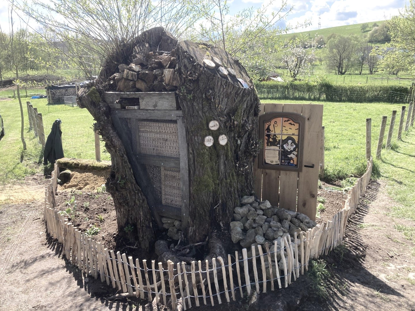„Das Thema Hexenhaus ist natürlich frei erfunden, aber der Gedanke dahinter war uns sehr wichtig“, so die Initiatoren Michael Heinen und Thomas Schrodt. „Unser Insektenhotel soll für verschiedene Insektenarten in unserer aufgeräumten Kulturlandschaft ein sicheres Zuhause bieten“, meint Thomas Schrodt. „Darüber hinaus wollten wir aber auch die Kinder im Ort für das Thema Umweltschutz sensibilisieren und begeistern“, ergänzt Michael Heinen. Zu finden ist das Insektenhotel am Rundwanderweg 79 des Naturpark Südeifel in Rittersdorf.