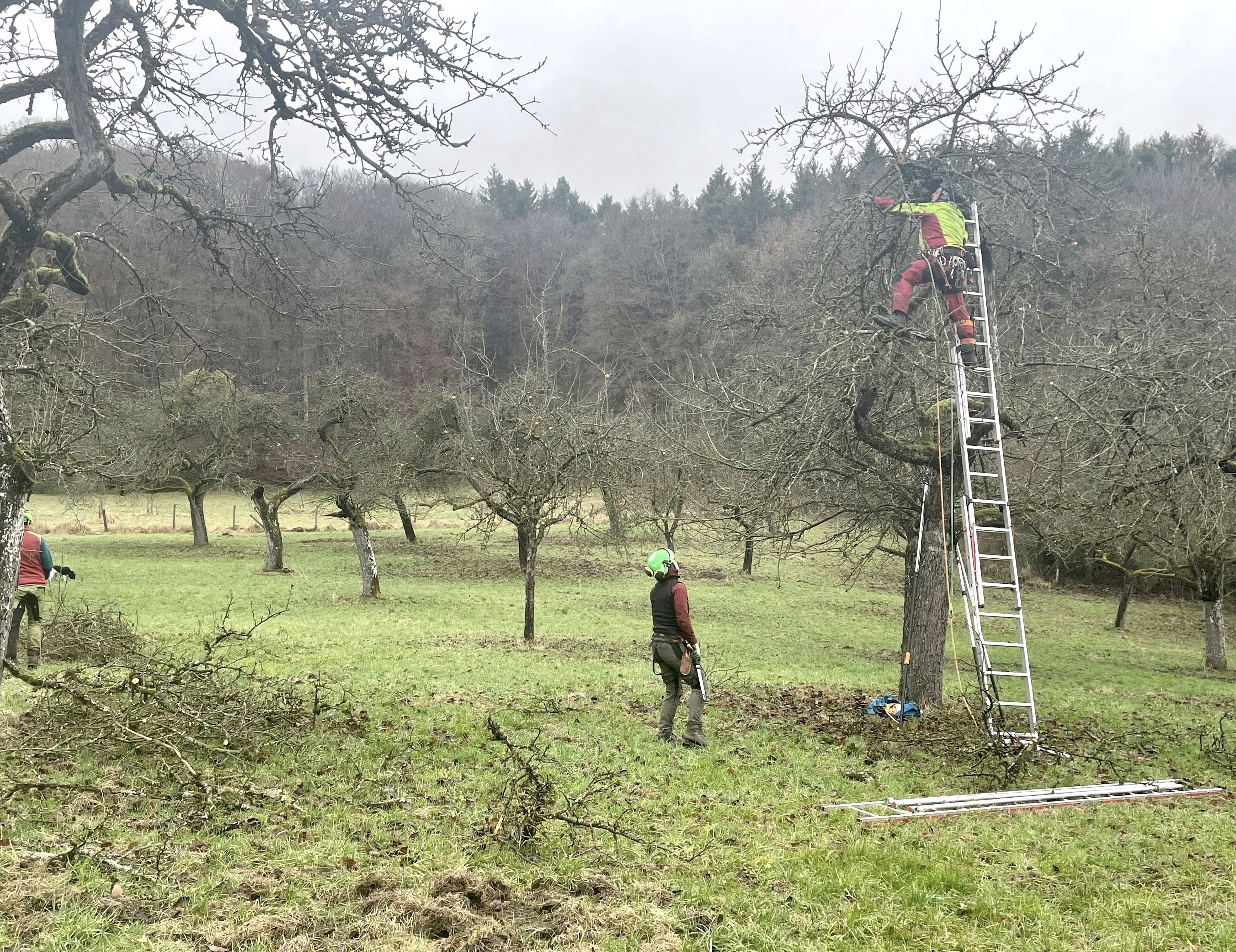 Deshalb haben die Naturparke Süd- und Nordeifel im Jahr 2013 die Initiative „Rettet die Streuobstwiesen!“ (www.streuobst.naturpark-suedeifel.de) gestartet, um die Öffentlichkeit auf den Zustand der Streuobstwiesen aufmerksam zu machen. Eine wichtige Maßnahme zum Erhalt der Streuobstwiesen ist beispielsweise die Schnittpflege. Insgesamt werden in diesem Winter fast 800 Obstbäume fachgerecht geschnitten. 25 Prozent der Kosten übernehmen die Eigentümer selbst, 75 Prozent werden gefördert im Rahmen des LEADER-Projektes "Inwertsetzung der Kulturlandschaft in den Naturparken Südeifel und Nordeifel durch Vitalisierung der Wertschöpfungskette Streuobst“. Damit ist die Förderung aufgrund der großen Nachfrage ausgeschöpft.