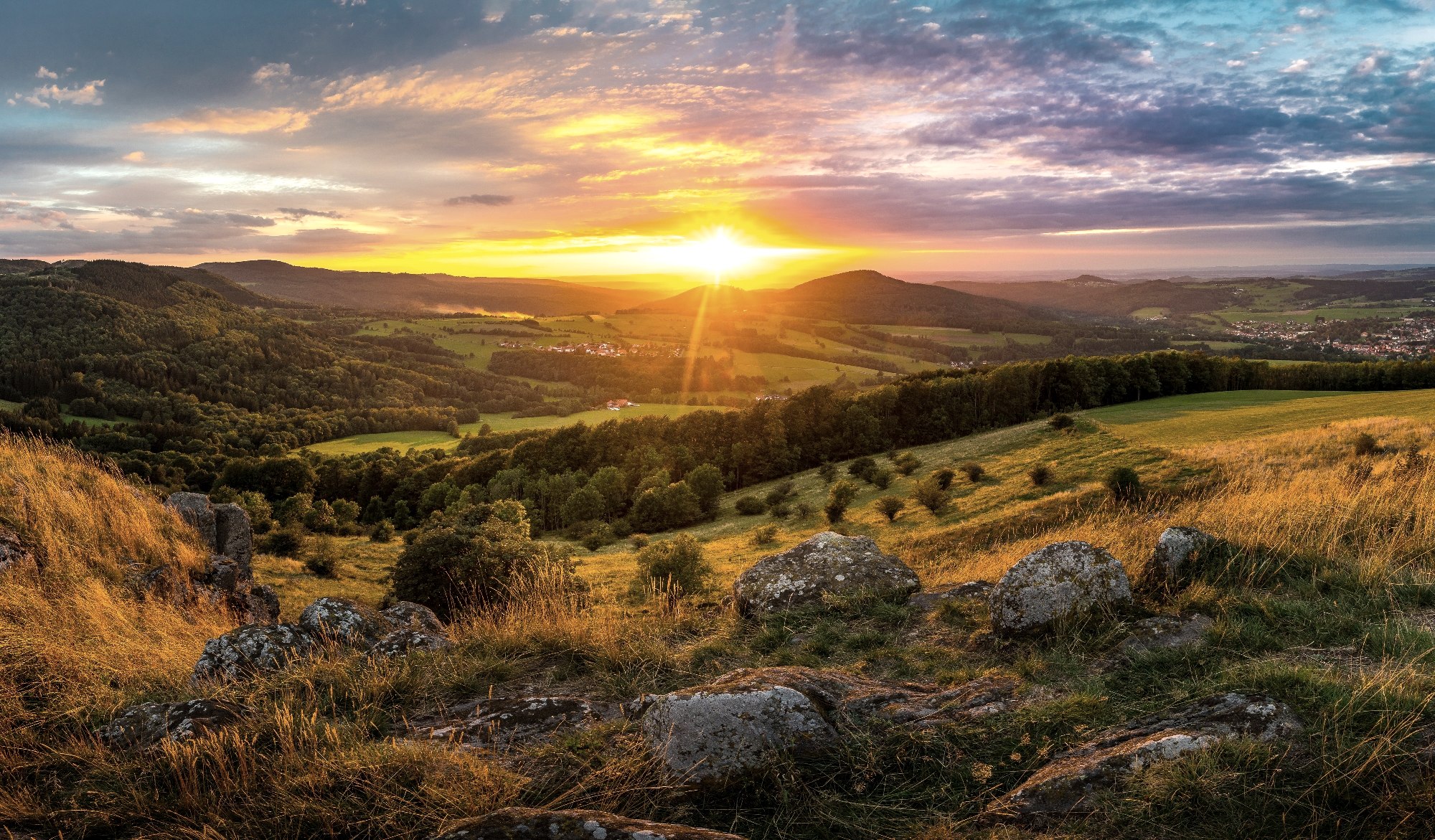 Mit der stimmungsvollen Aufnahme eines Sonnenuntergangs über dem Simmelsberg lädt der Verband Deutscher Naturparke e. V. (VDN e. V.) Amateur- und Profifotografinnen und -fotografen in diesem Jahr zum 17. Mal zur Teilnahme am Fotowettbewerb „Augenblick Natur!“ ein. Dem Fotografen Jens Becker gelang die Aufnahme vom Sonnenuntergang über dem Simmelsberg im Naturpark Hessische Rhön. Zu monatlich wechselnden Themen werden bis Ende Oktober besondere Momente und ausdrucksstarke Motive aus den Naturparken in Deutschland gesucht, beispielsweise aus dem Naturpark Südeifel. Alle Monatsthemen finden Sie auf der Webseite www.naturparkfotos.de unter Wettbewerbe.